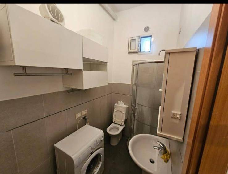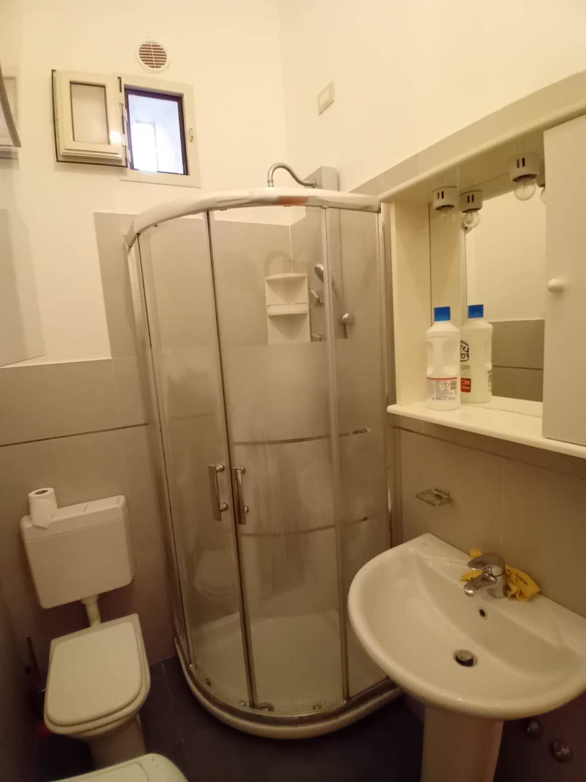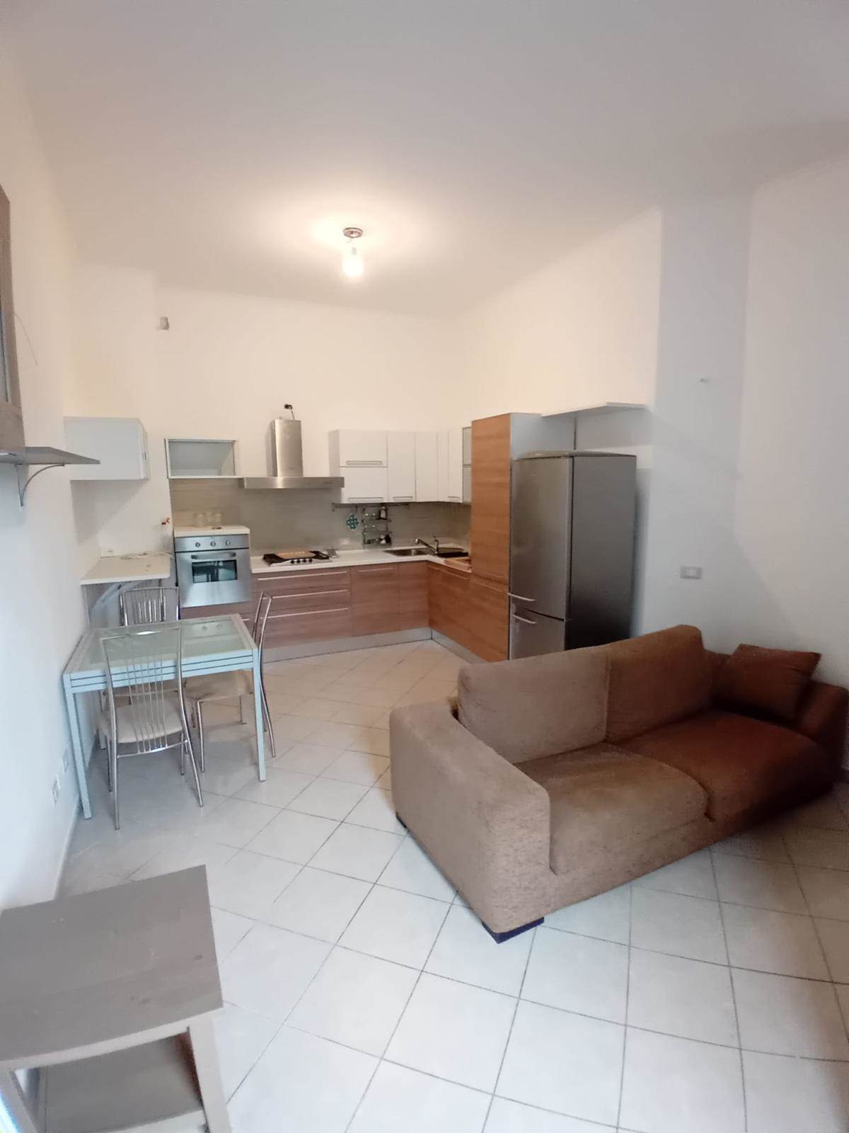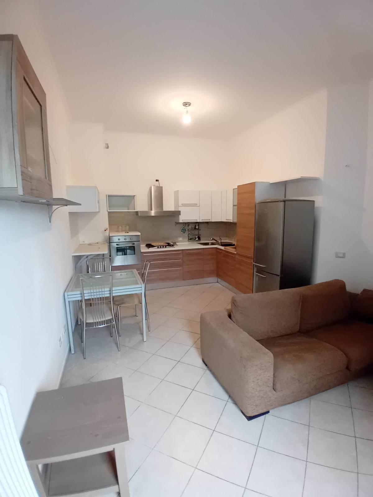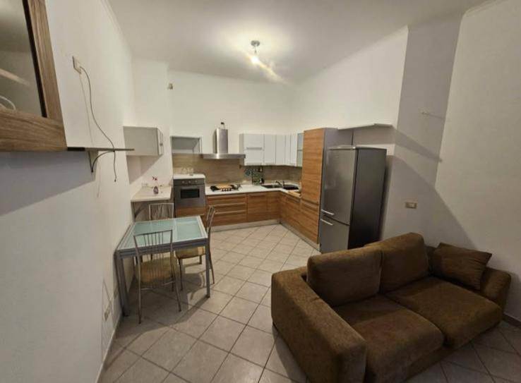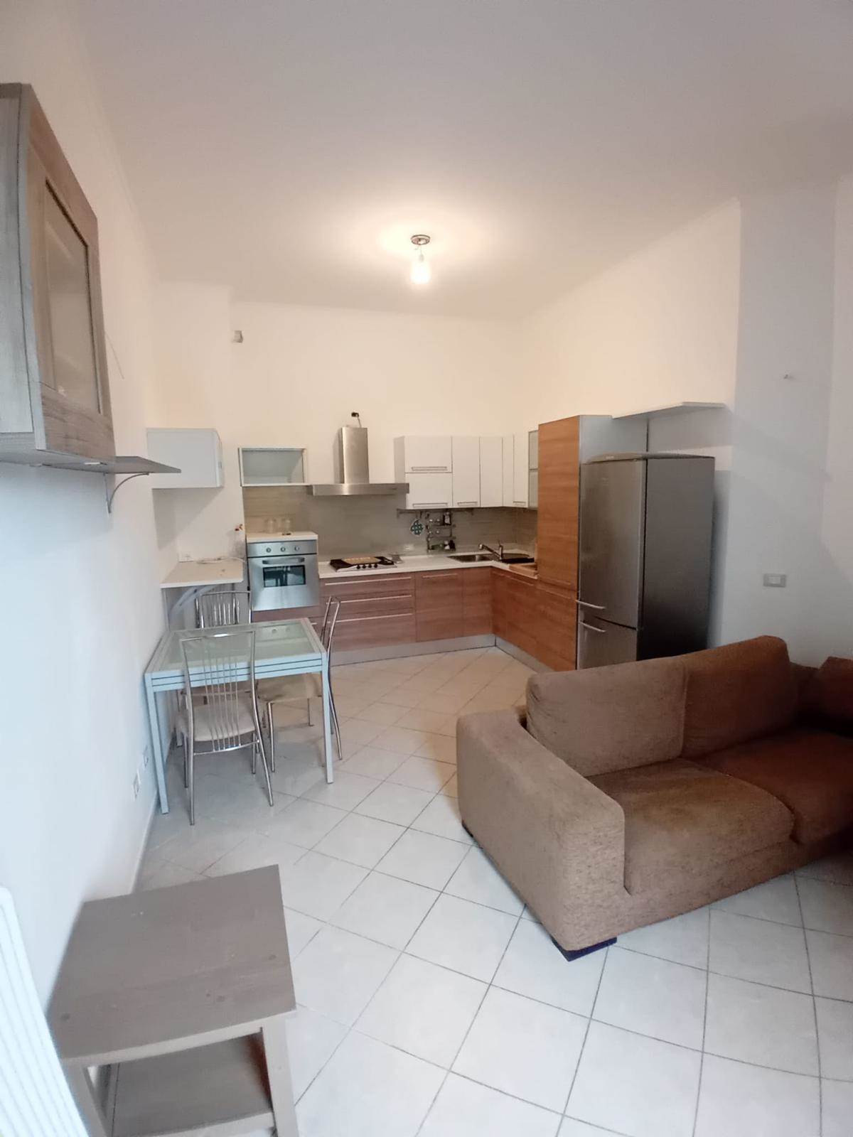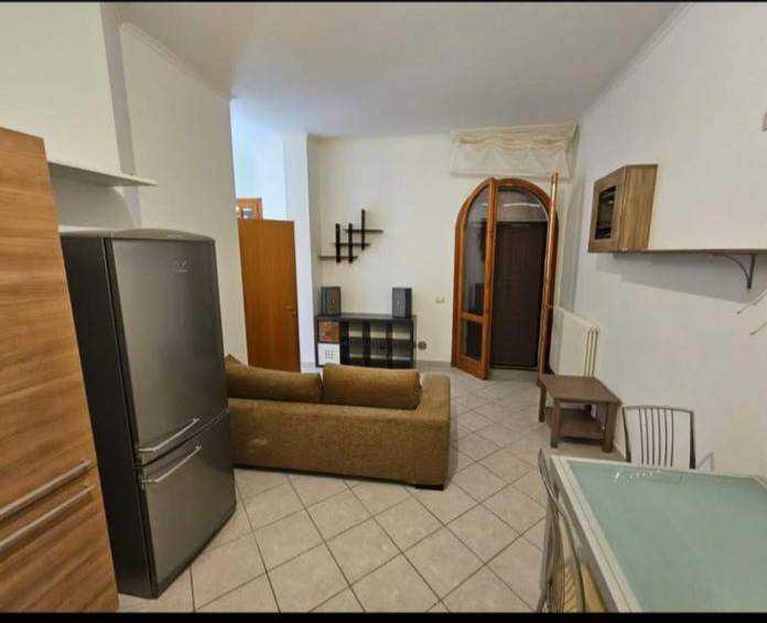 ingresso in zona giorno con angolo cottura, disimpegno, bagno finestrato con box e camera matrimoniale.