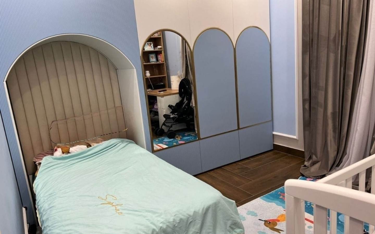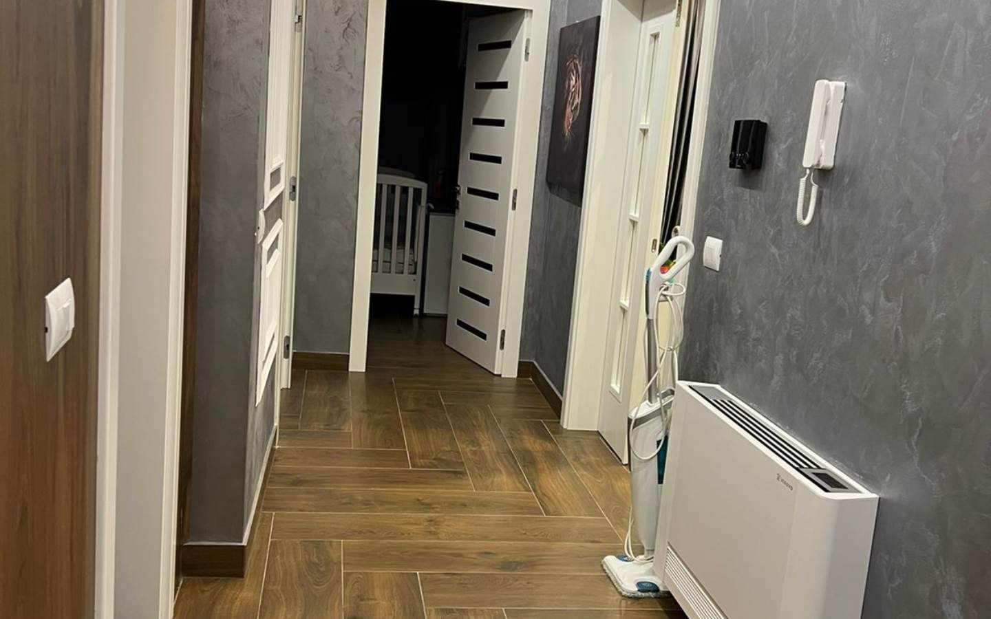 L'appartamento ha una superficie di 105 mq e ha una tipologia 2+1. L'appartamento è così composto: due camere da letto, stanza guardaroba, soggiorno, cucina, zona pranzo, bagno e balcone. L'appartamento ha una monilizzazione moderna ed è curato nei dettagli. Si trova al 6° piano di un edificio ben tenuto e dotato di ascensore.
