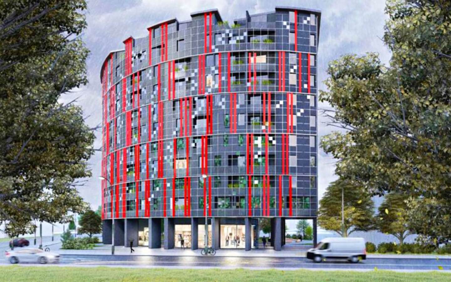 L'edificio ha 11 piani residenziali, 1 piano negozio e 2 piani parcheggio sotterraneo. La struttura offrirà una costruzione di alta qualità, 2 ascensori, sicurezza 24 ore su 24, area ricreativa verde, manutenzione d'élite e vari servizi.