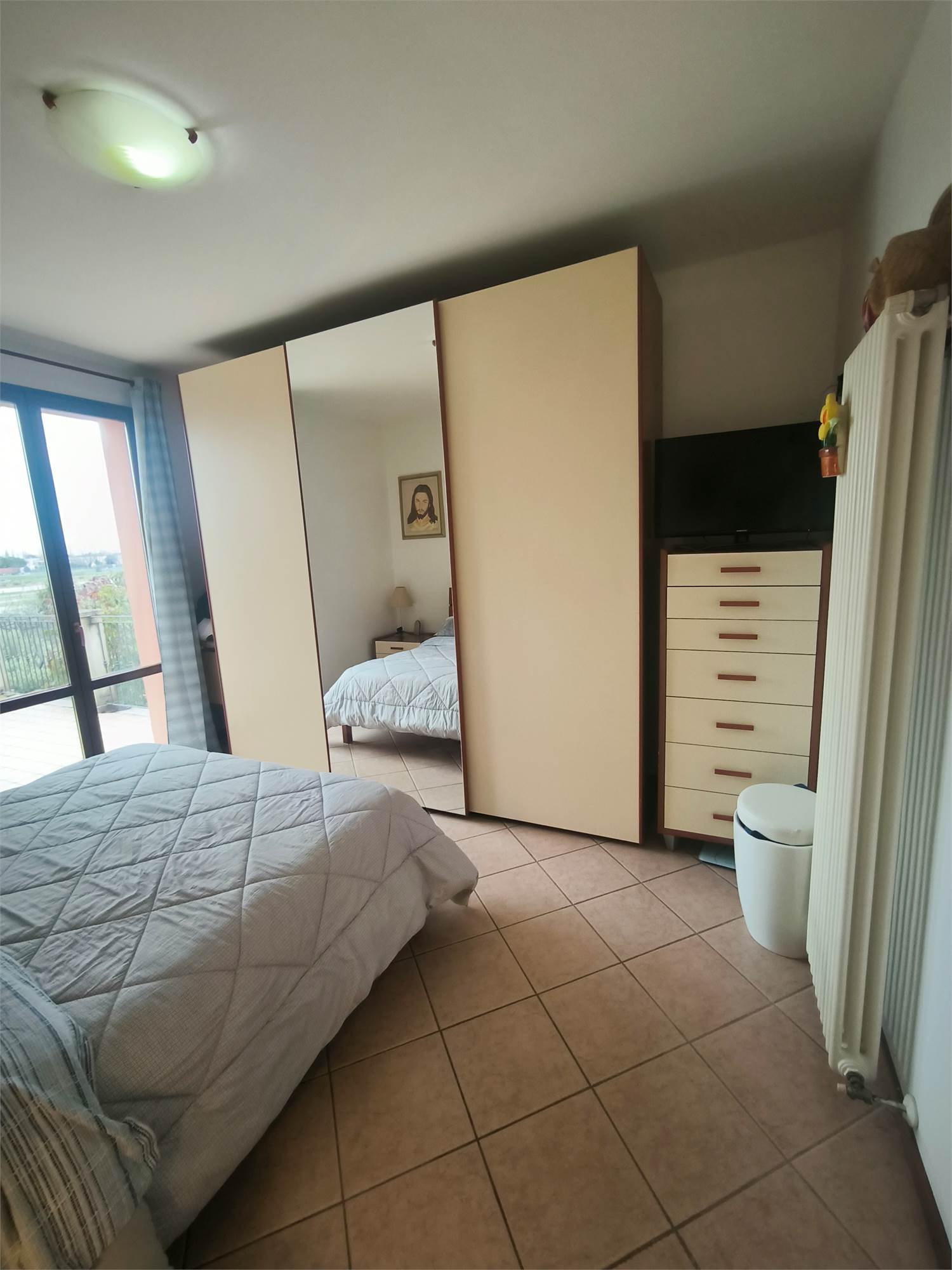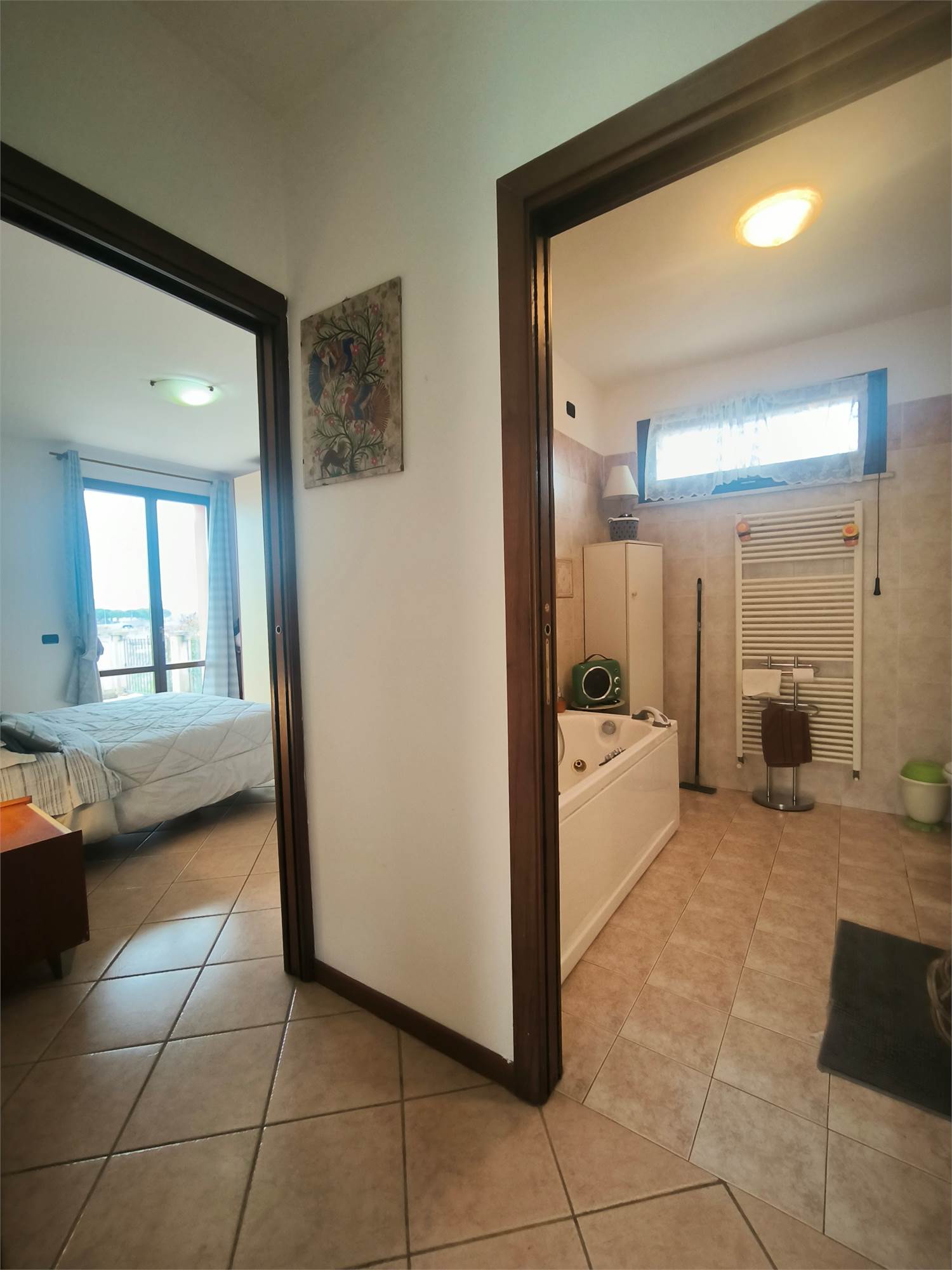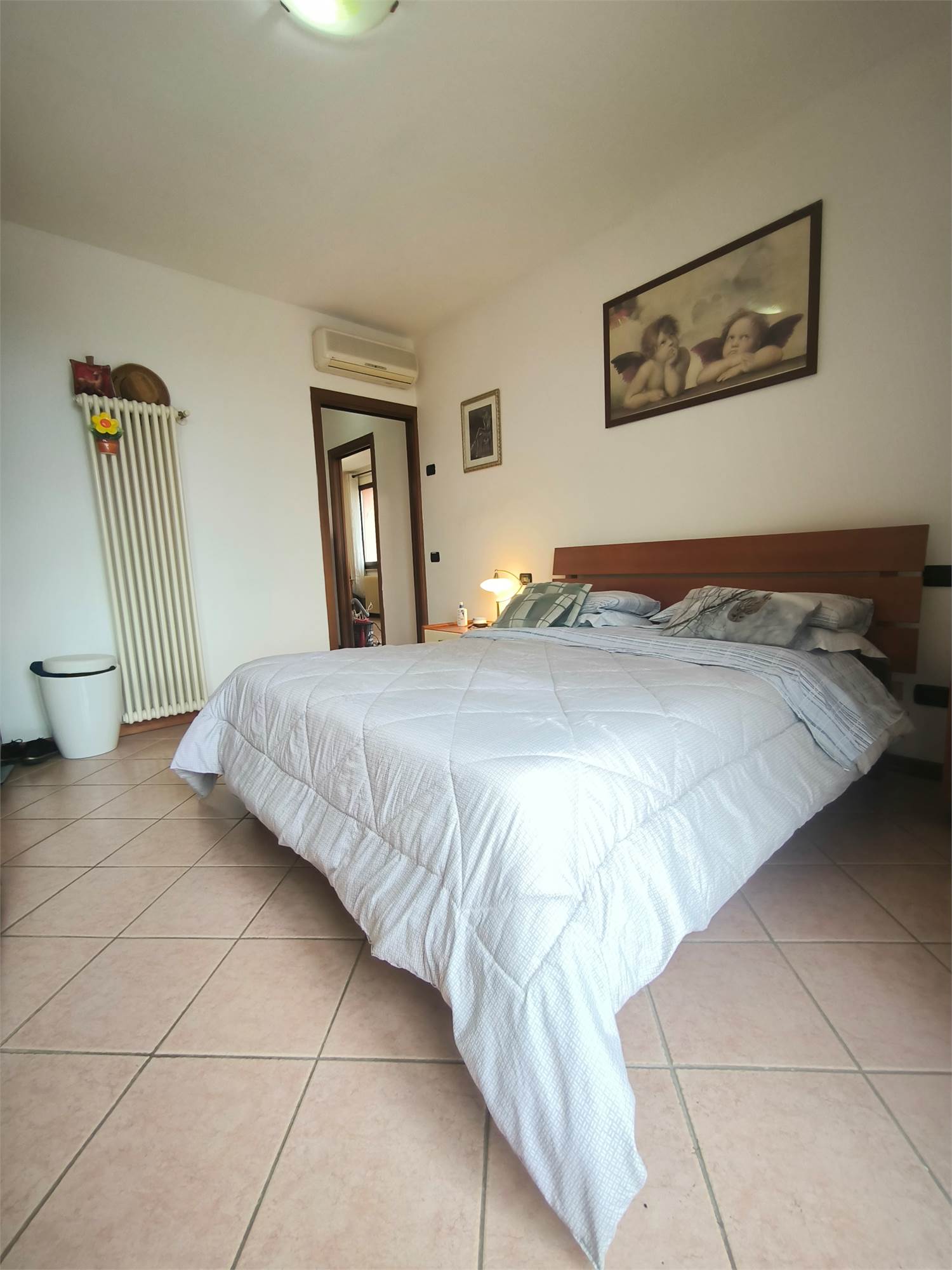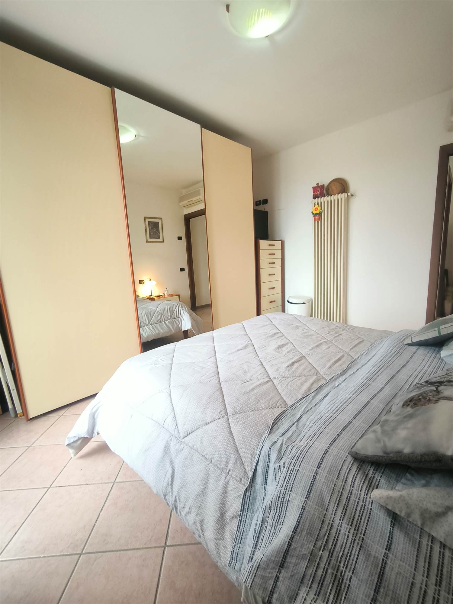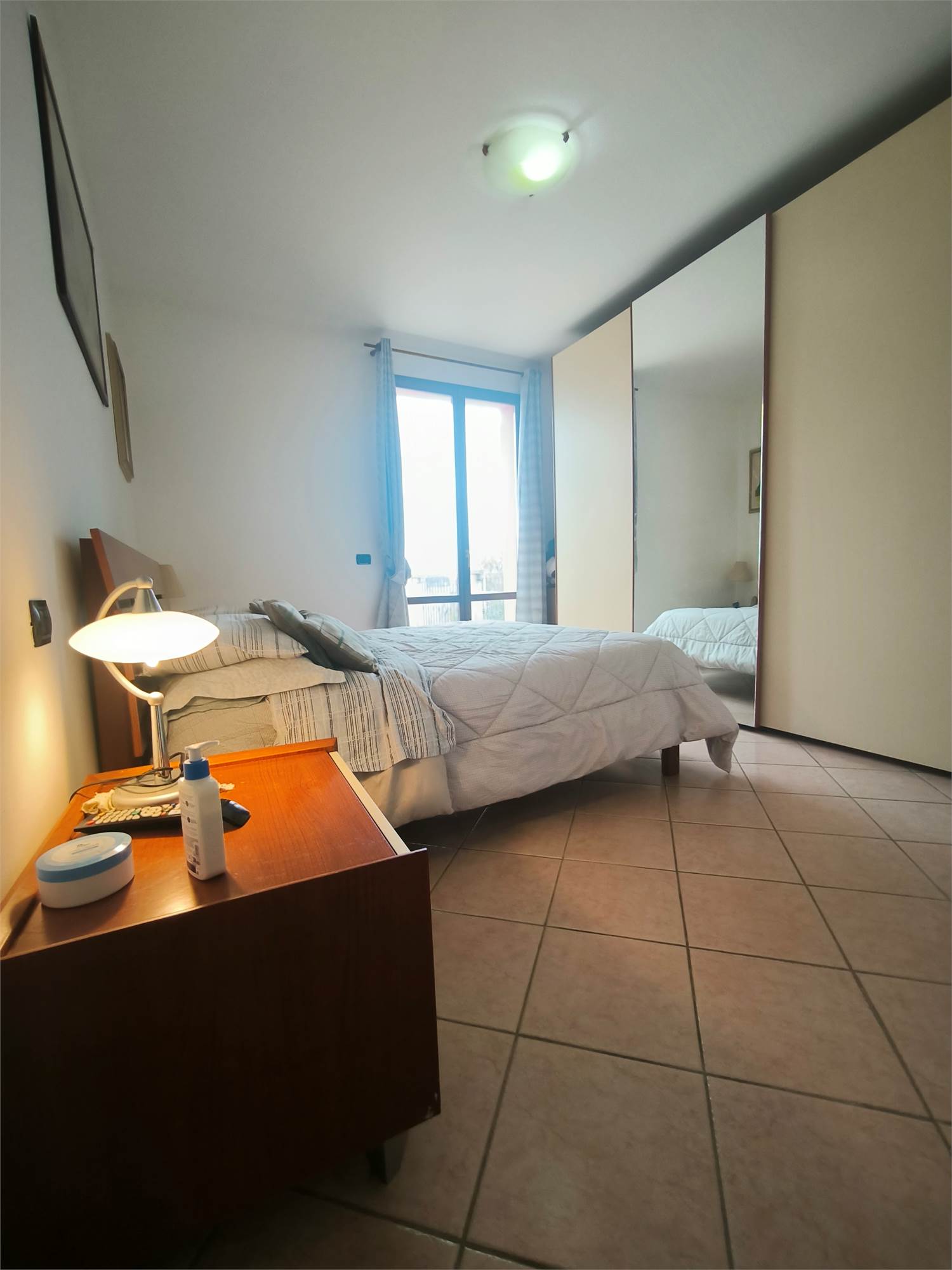Zona Notte: Una spaziosa camera matrimoniale e un bagno finestrato.