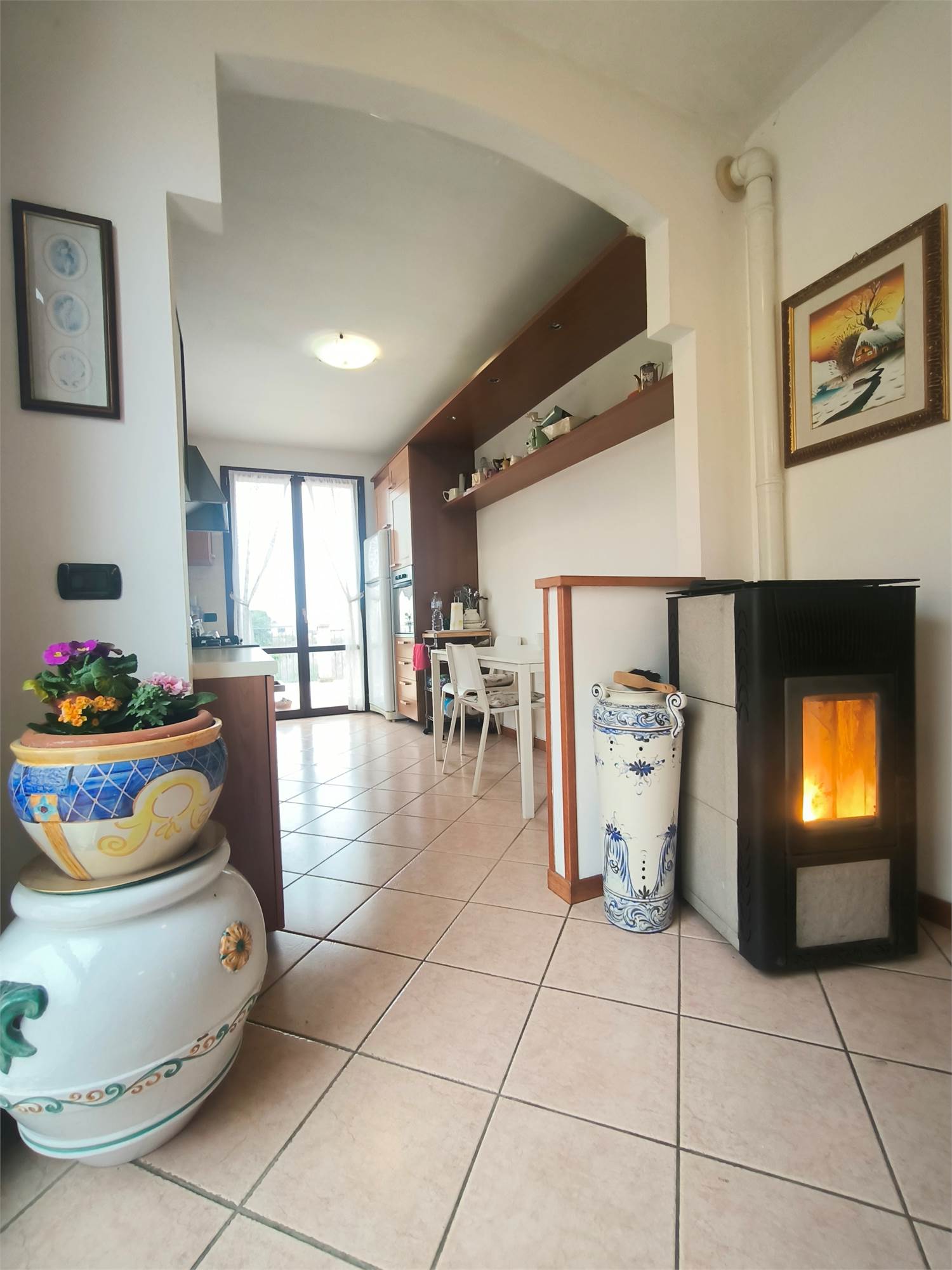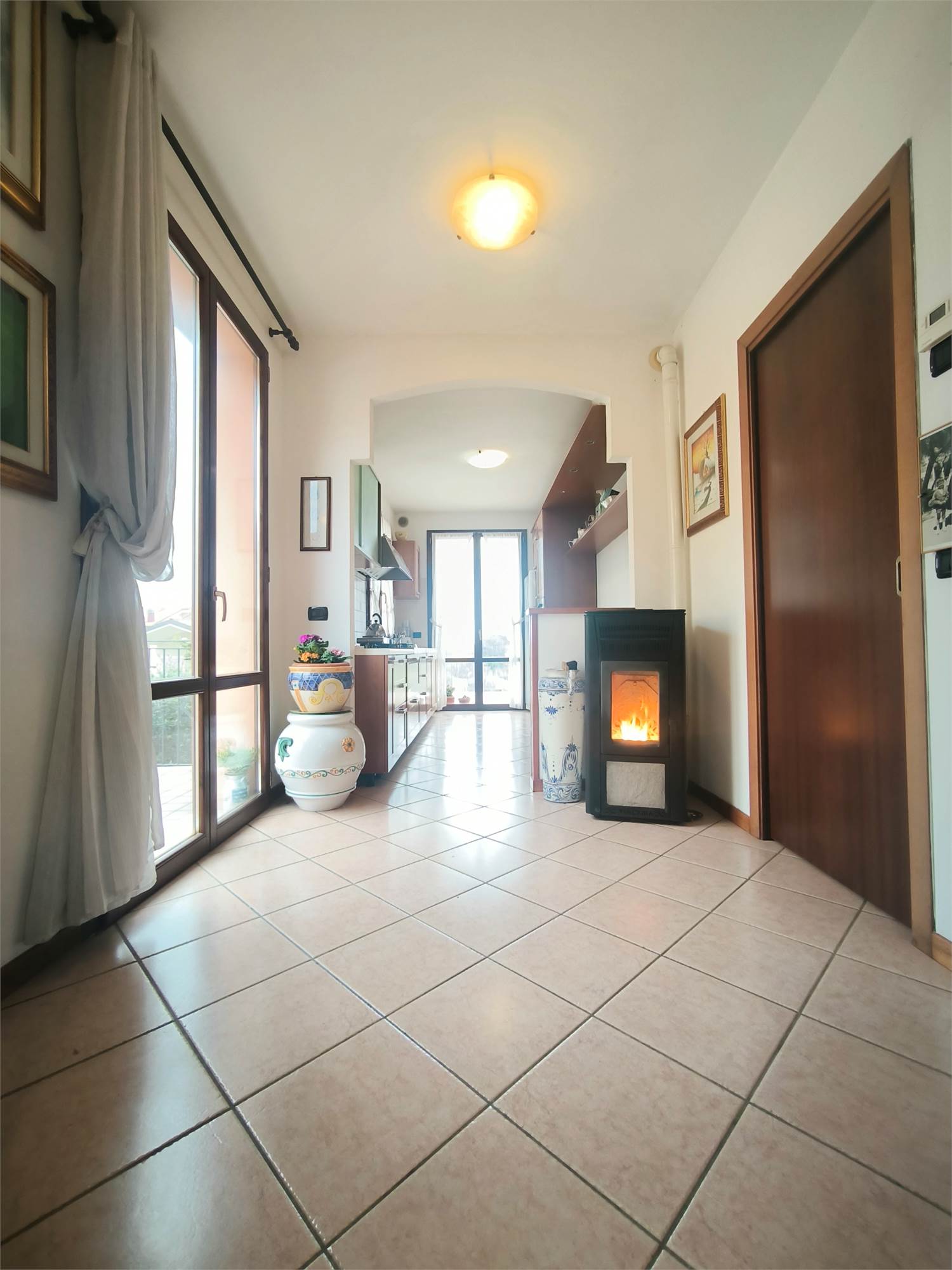 Descrizione degli Interni: Zona Giorno: Ampio soggiorno con doppia esposizione e balconee stufa a pellet, una cucina a vista per un comfort ottimale ed un grande terrazzo con vista aperta.