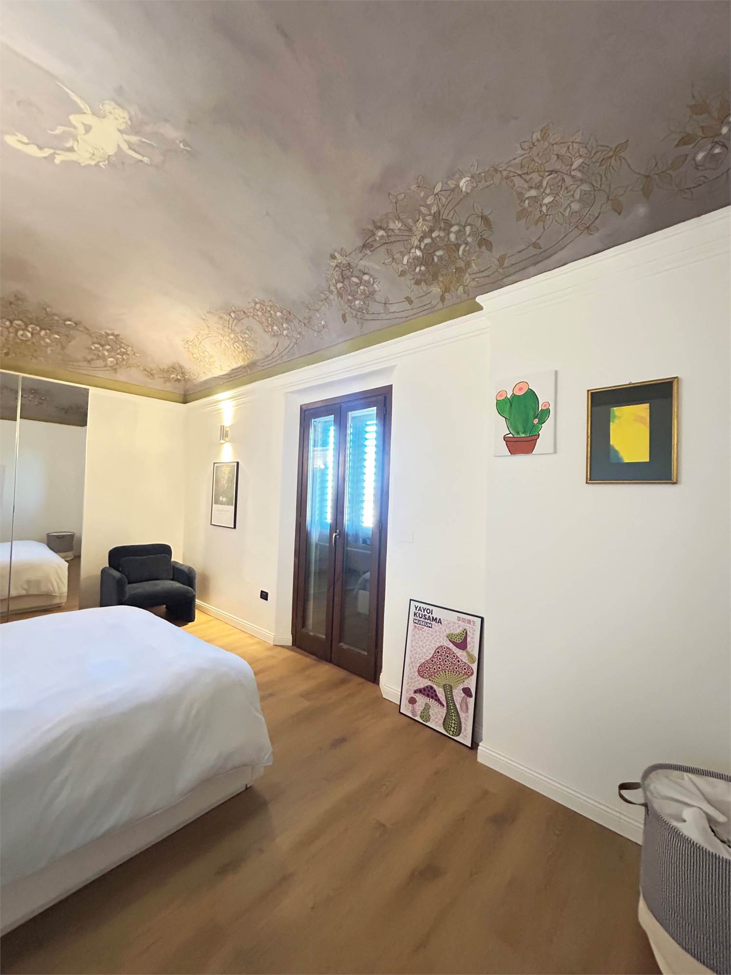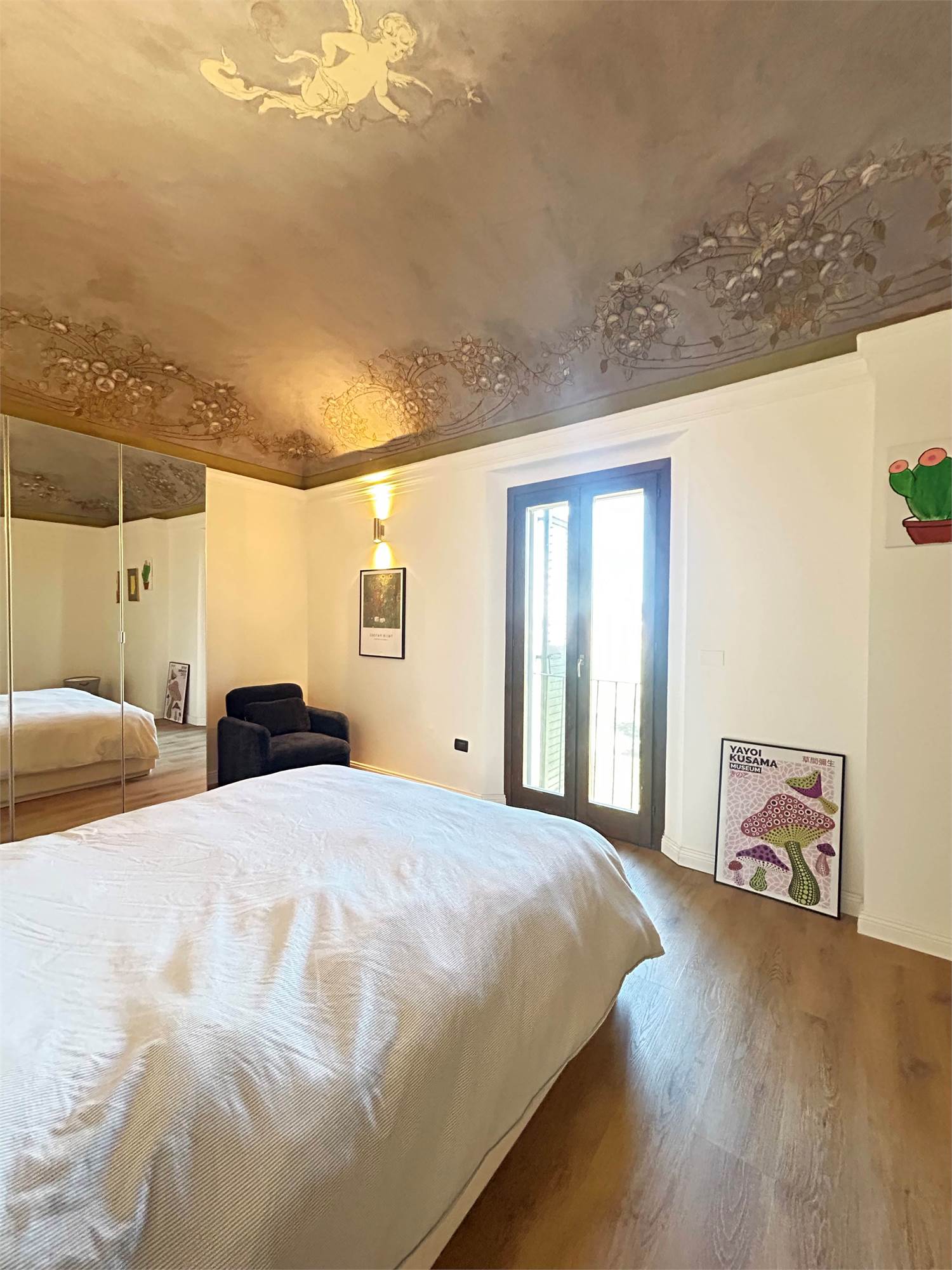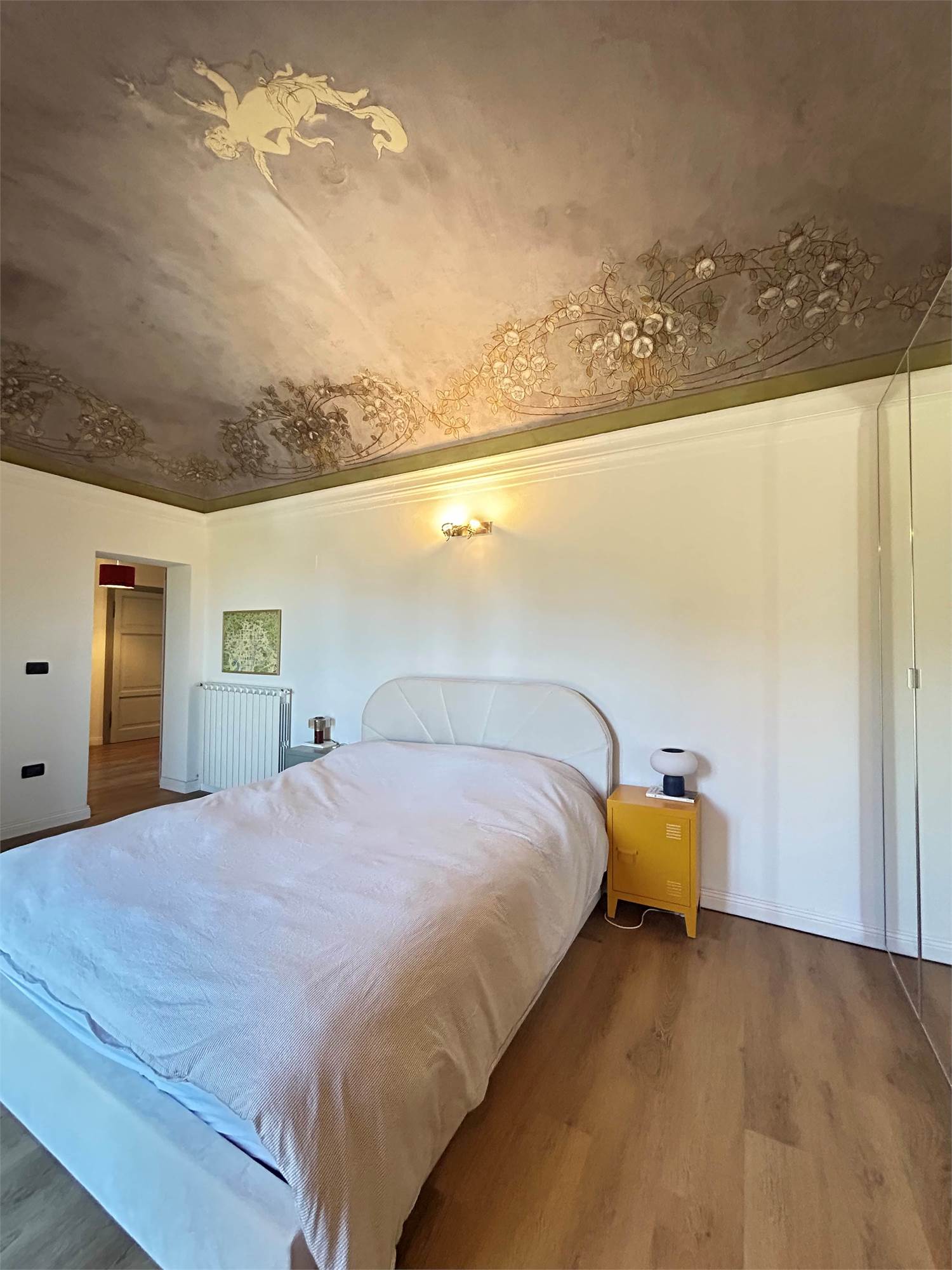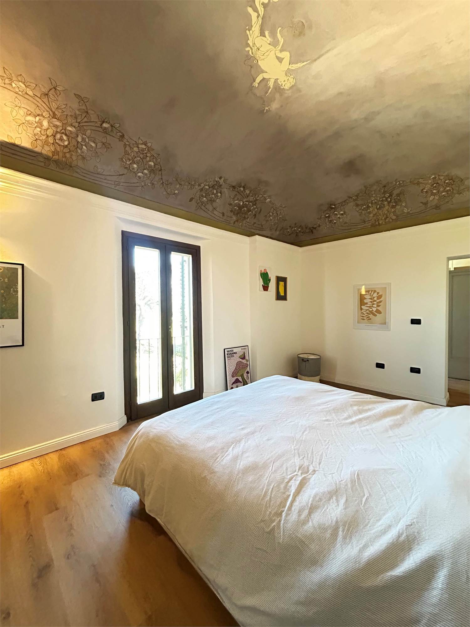 Pavimenti in parquet e dettagli affrescati, porta blindata, zanzariere e predisposizione per aria condizionata.