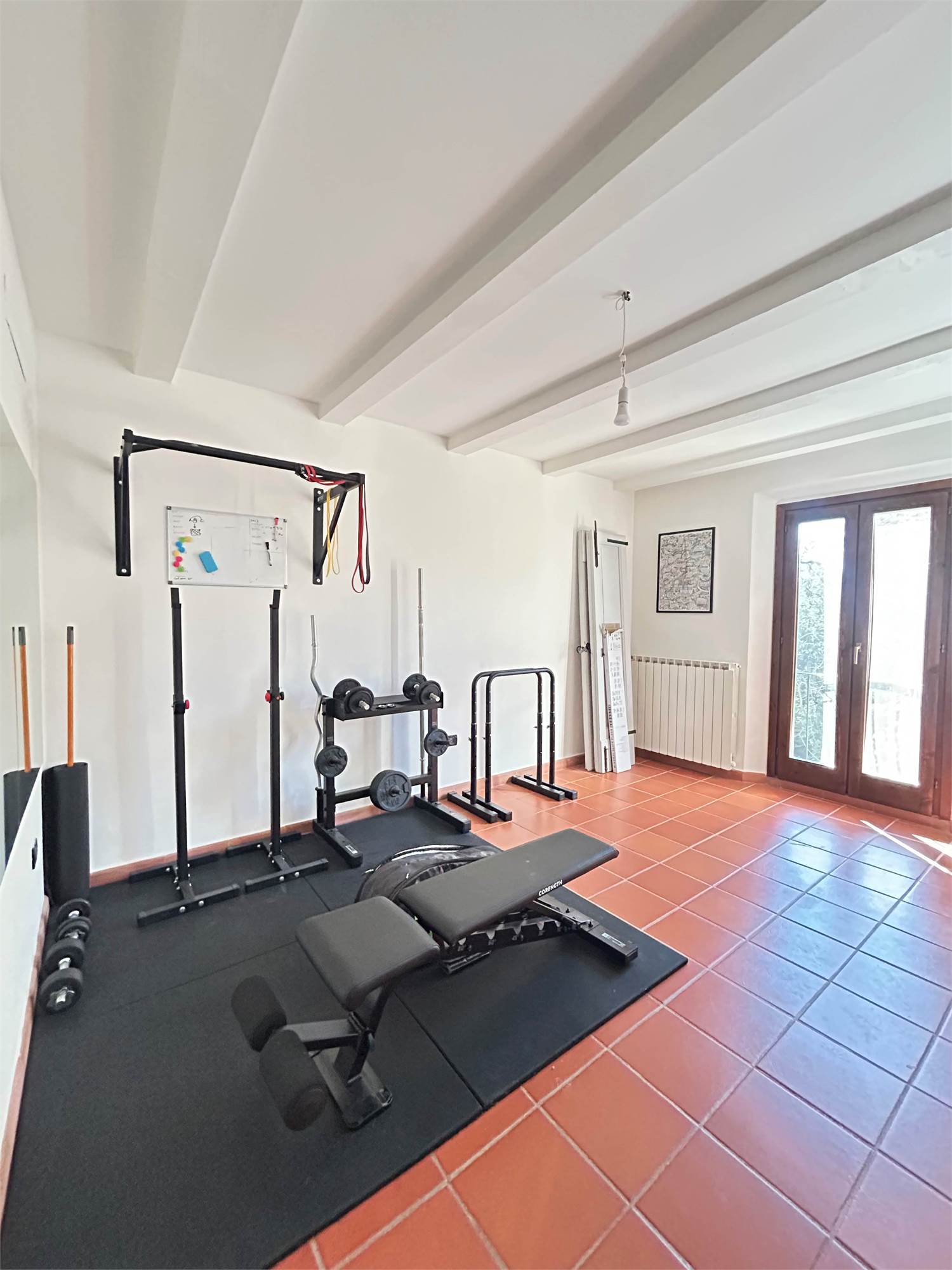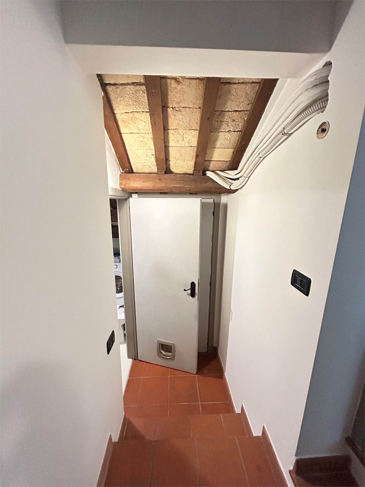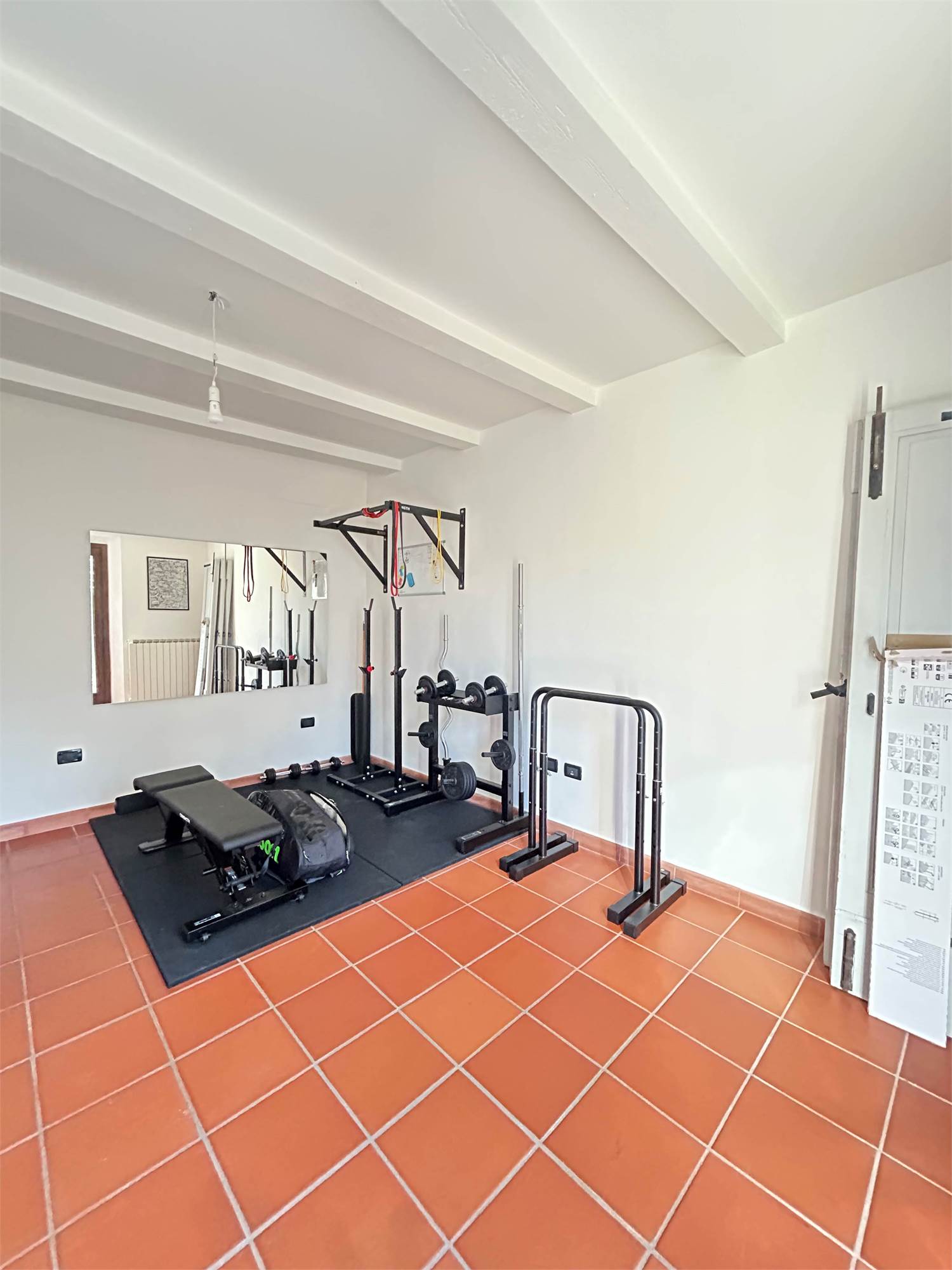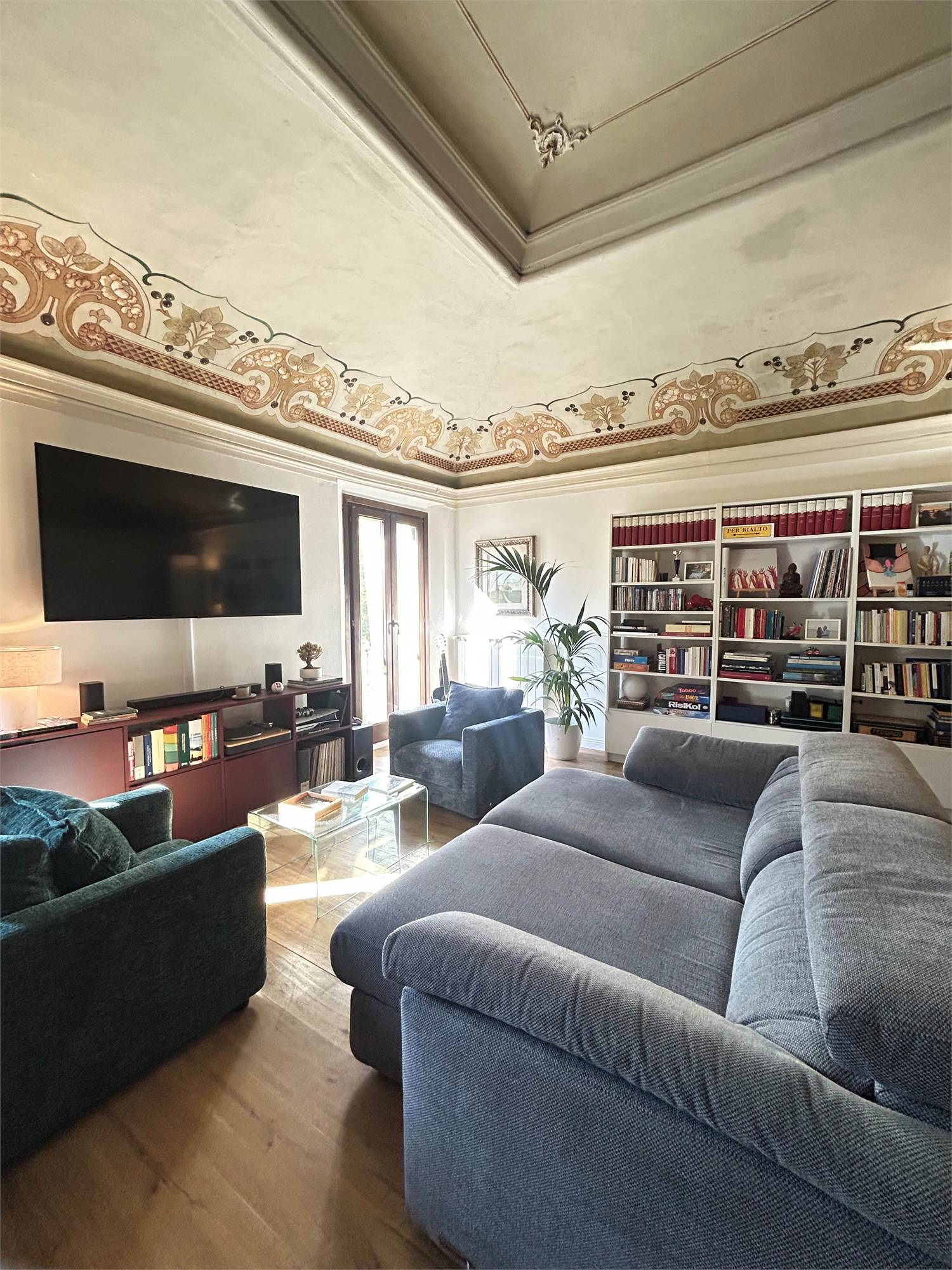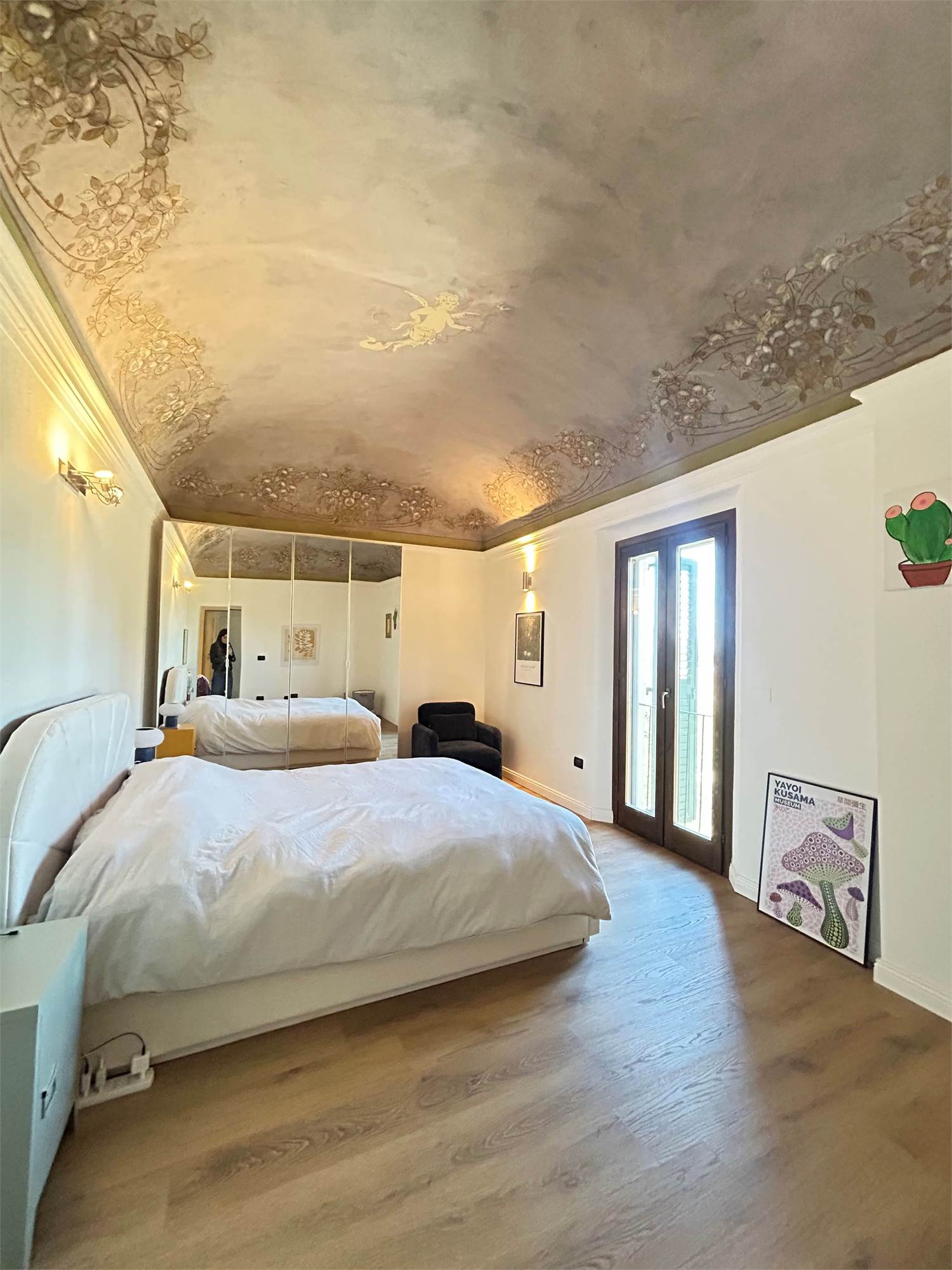 Pavimenti in parquet e dettagli affrescati, porta blindata, zanzariere e predisposizione per aria condizionata.