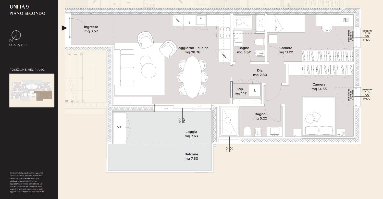 In parte Loggiato: La profondità del loggiato offre una protezione naturale dal sole e dalle intemperie, creando una vera e propria "stanza all'aperto" protetta.