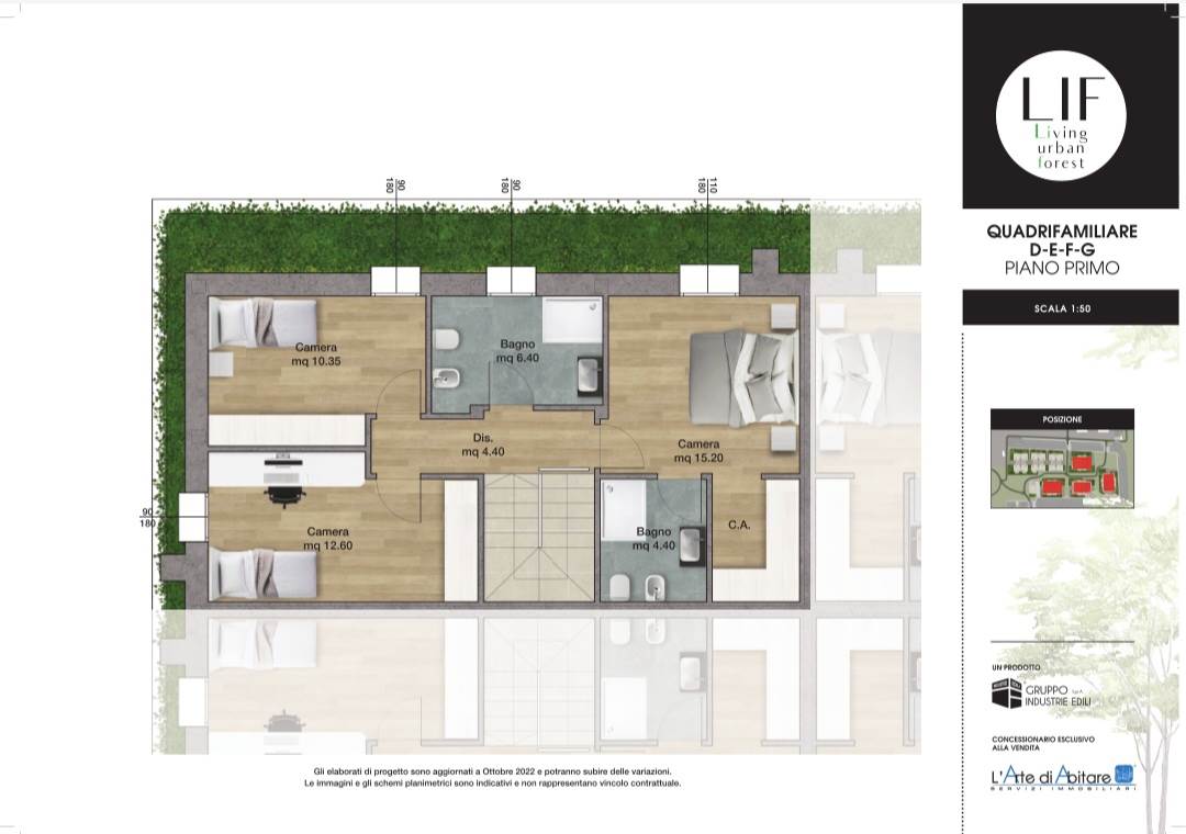 Il primo piano ospita la zona notte composta da camera padronale con bagno en suite e cabina armadio dedicata, seconda camera doppia, terza camera singola e ulteriore bagno a servizio del piano, per un totale di 3 camere e 3 bagni.