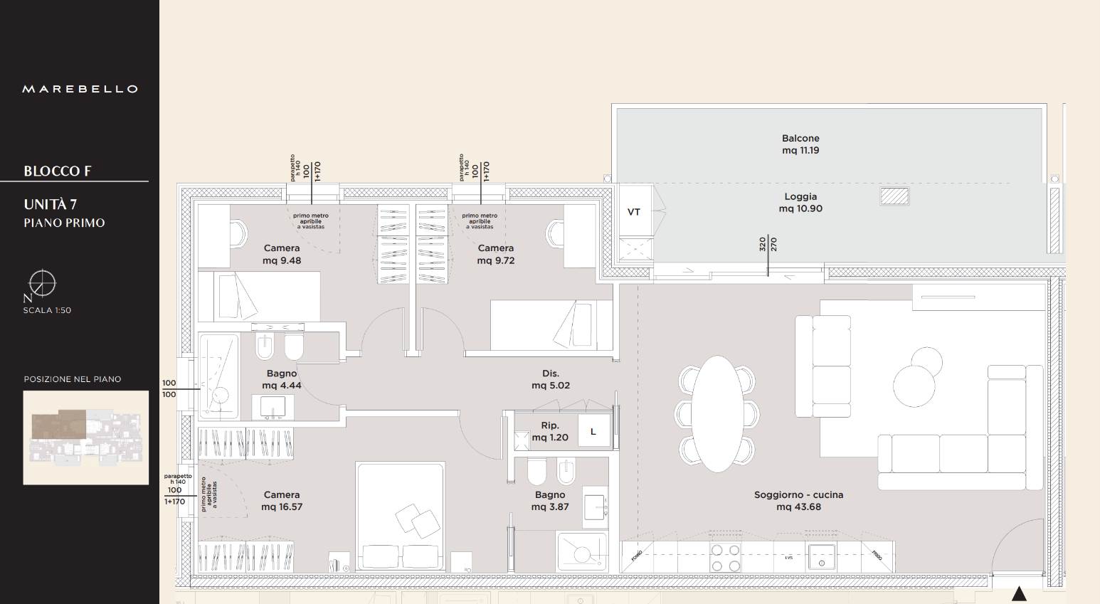 oSeconda Camera (9,72 m²) e Terza Camera (9,48 m²): Spazi versatili per figli, ospiti o studio professionale.