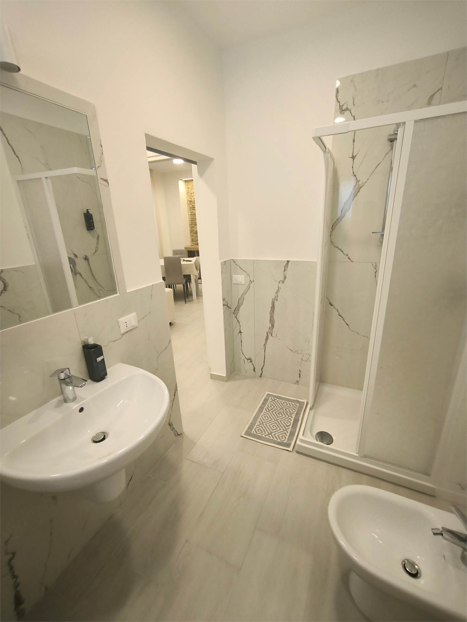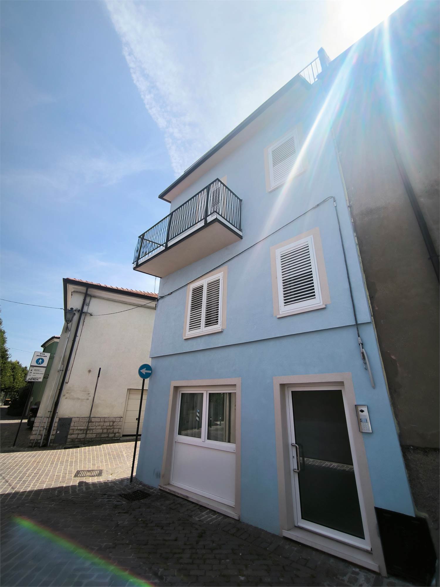 L'appartamento al secondo piano dispone di un balcone esclusivo, elemento raro nel borgo. All’ultimo piano, una splendida terrazza panoramica offre una vista aperta sui tetti e sul fascino storico del borgo.