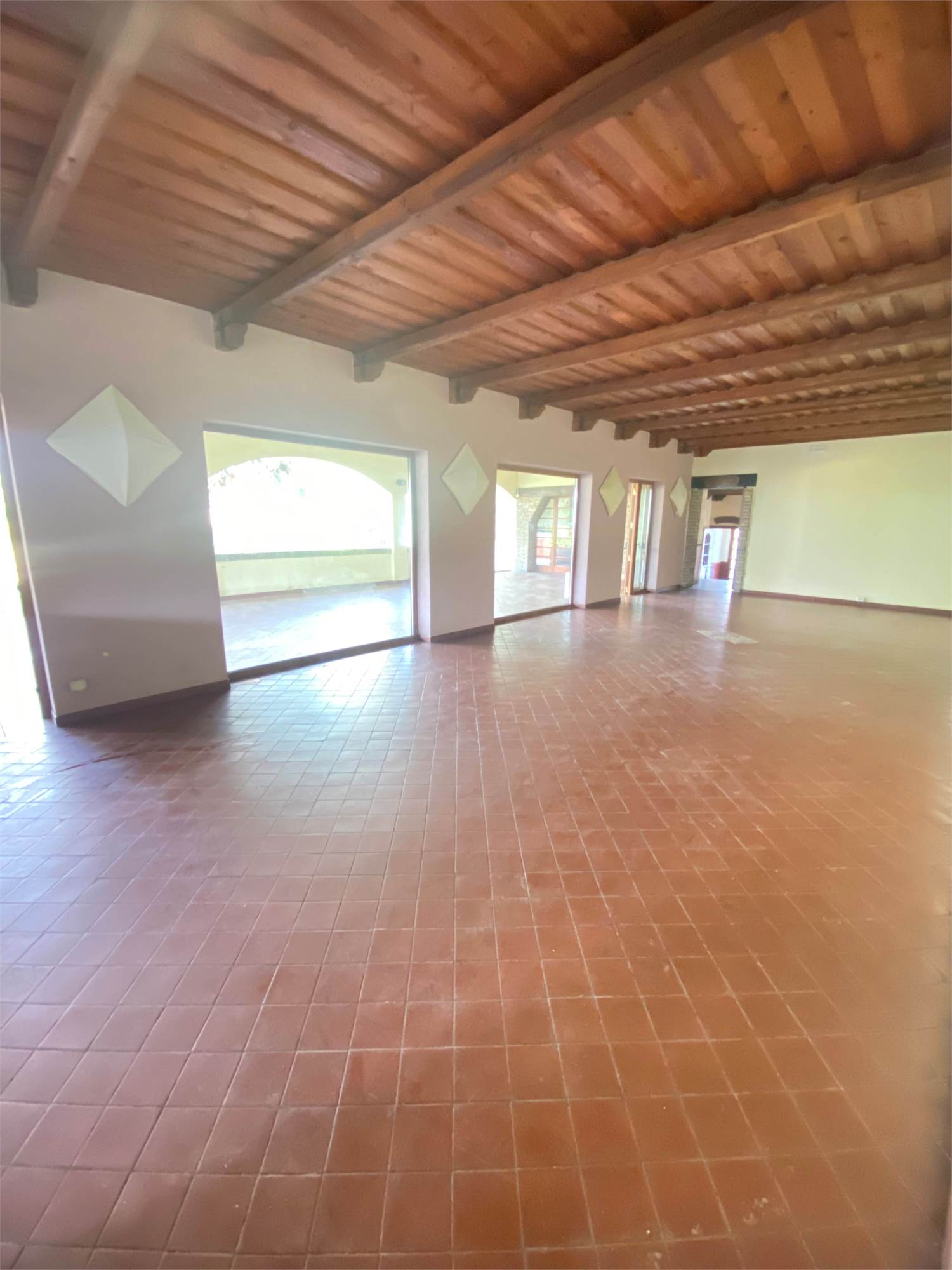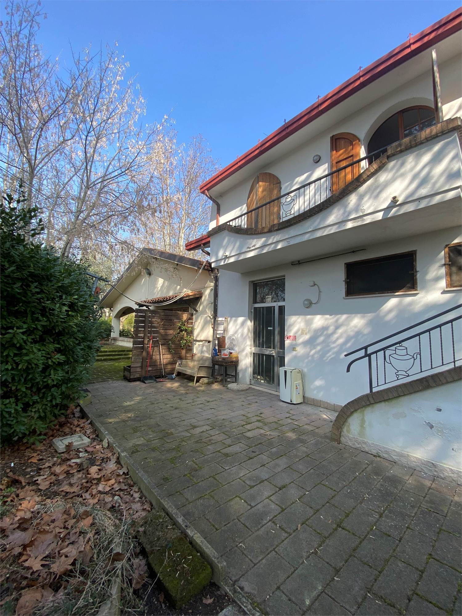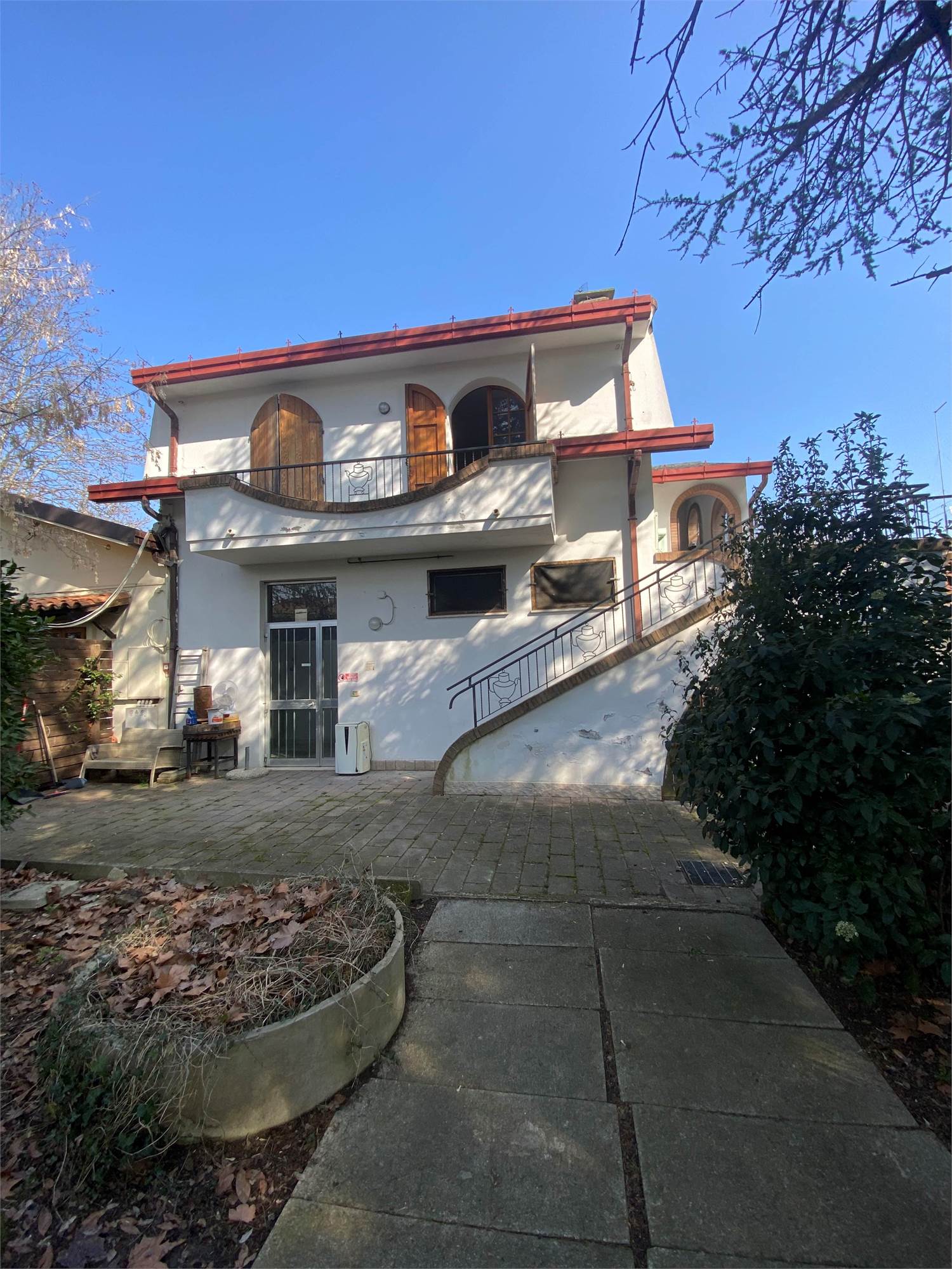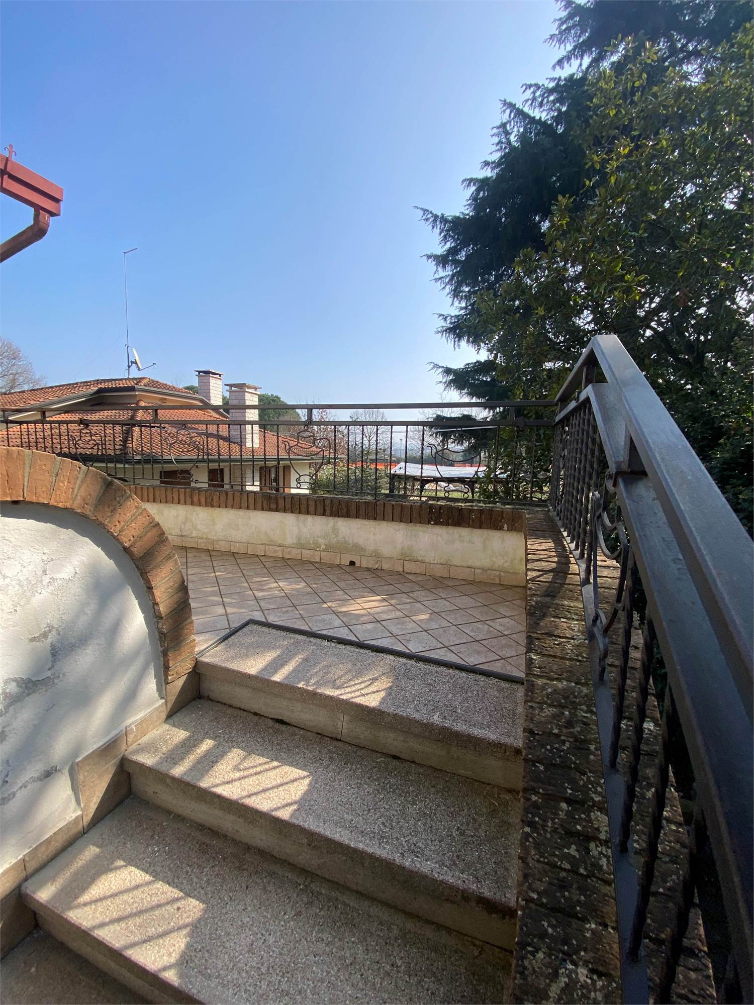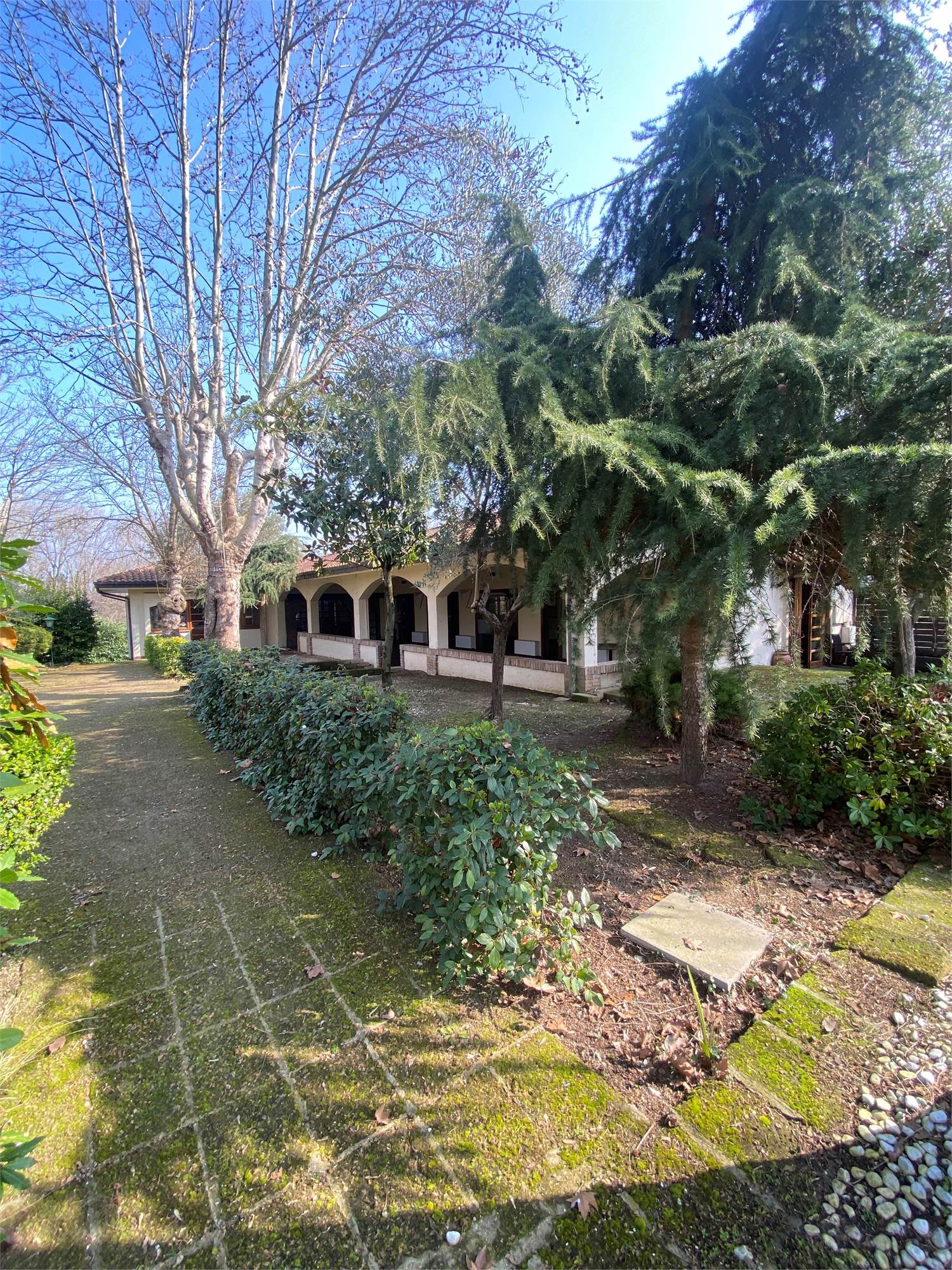 La proprietà si distingue per le generose metrature, il grande giardino privato che circonda l’immobile e gli ampi spazi esterni con parcheggio privato e garage.