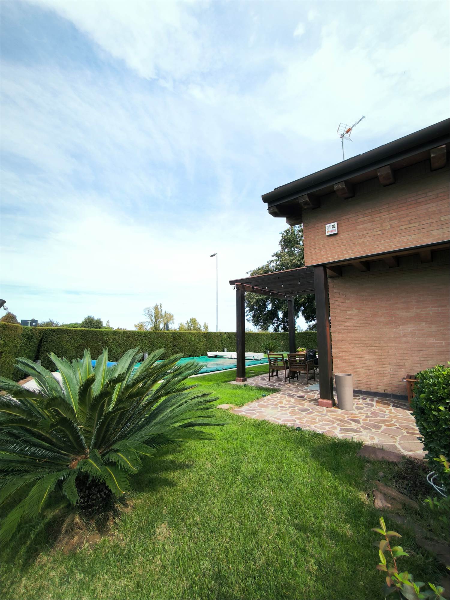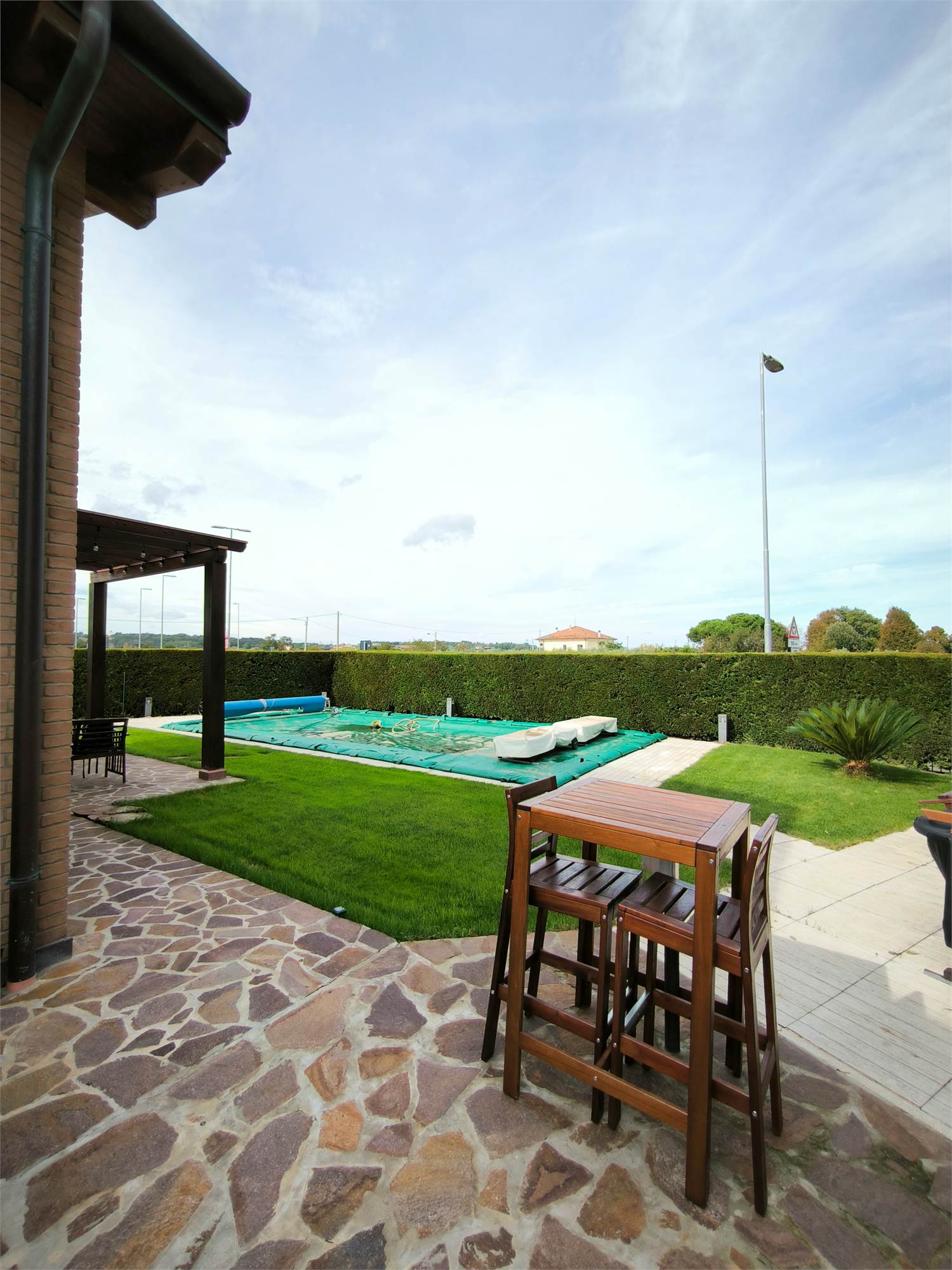 AMPIO GIARDINO PRIVATO CON PISCINA RISCALDATA /RAFFREDDATA DOTATA DI PIMPA PER NUOTO CONTROCORENTE E ZONA BARBECUE.