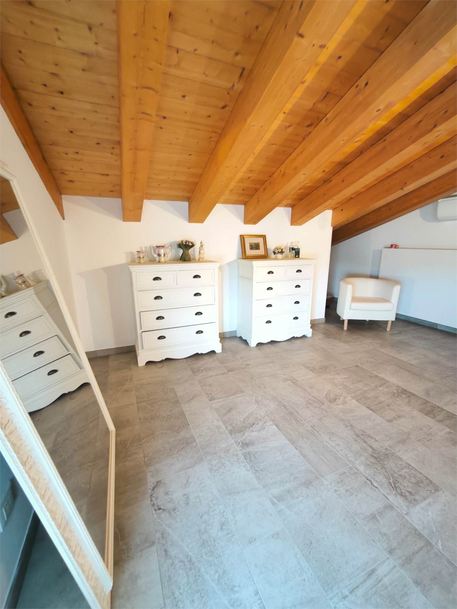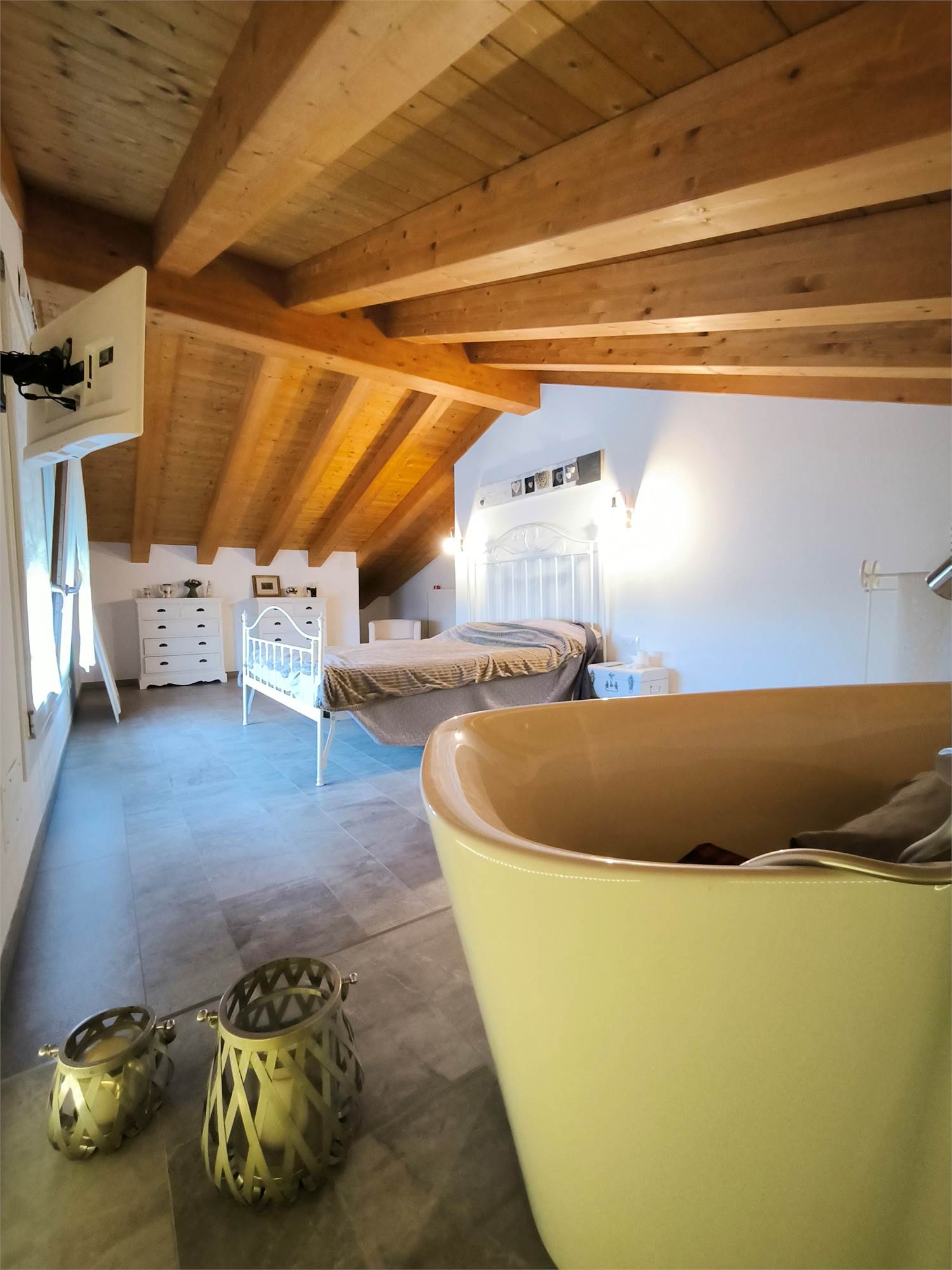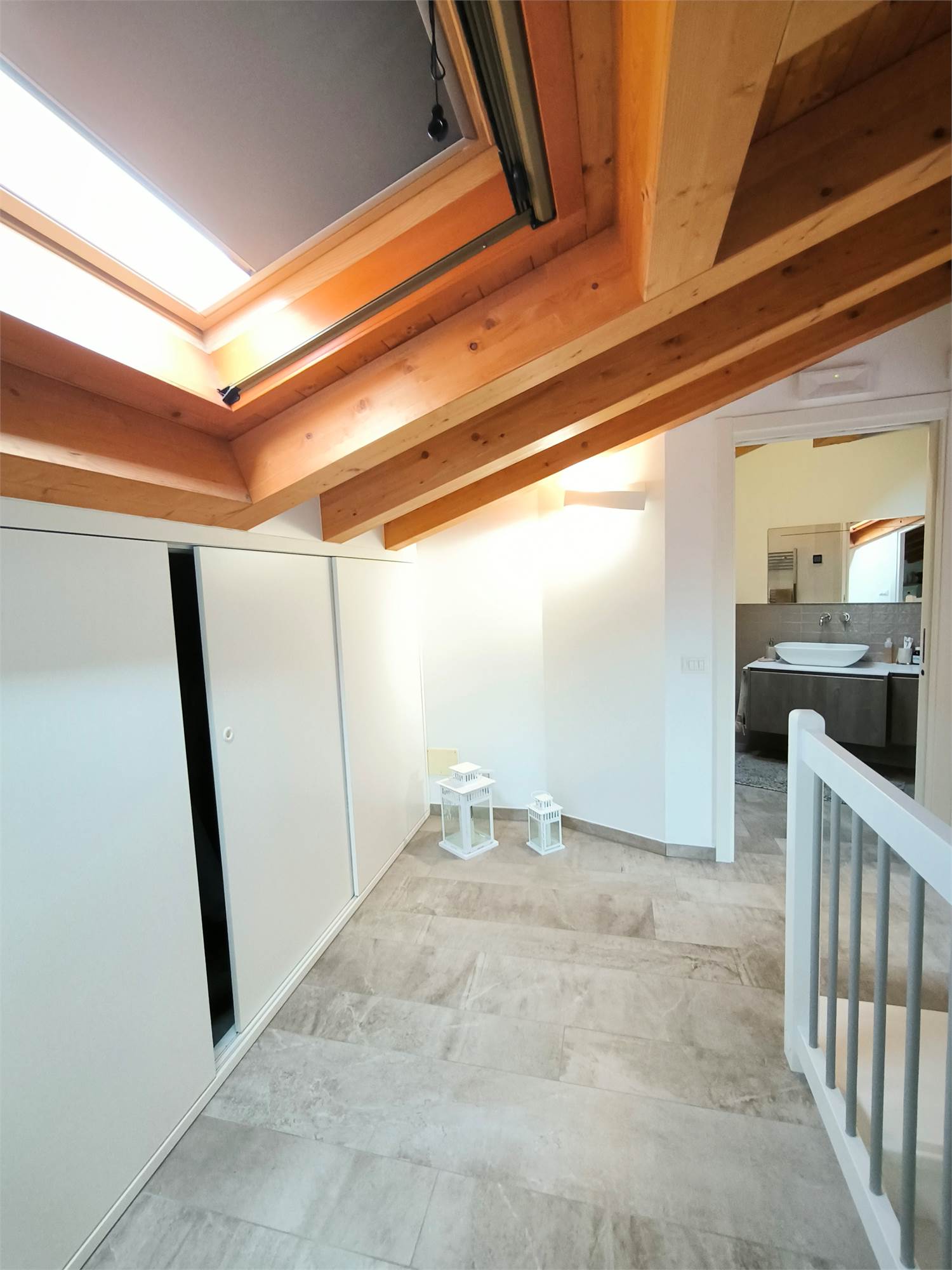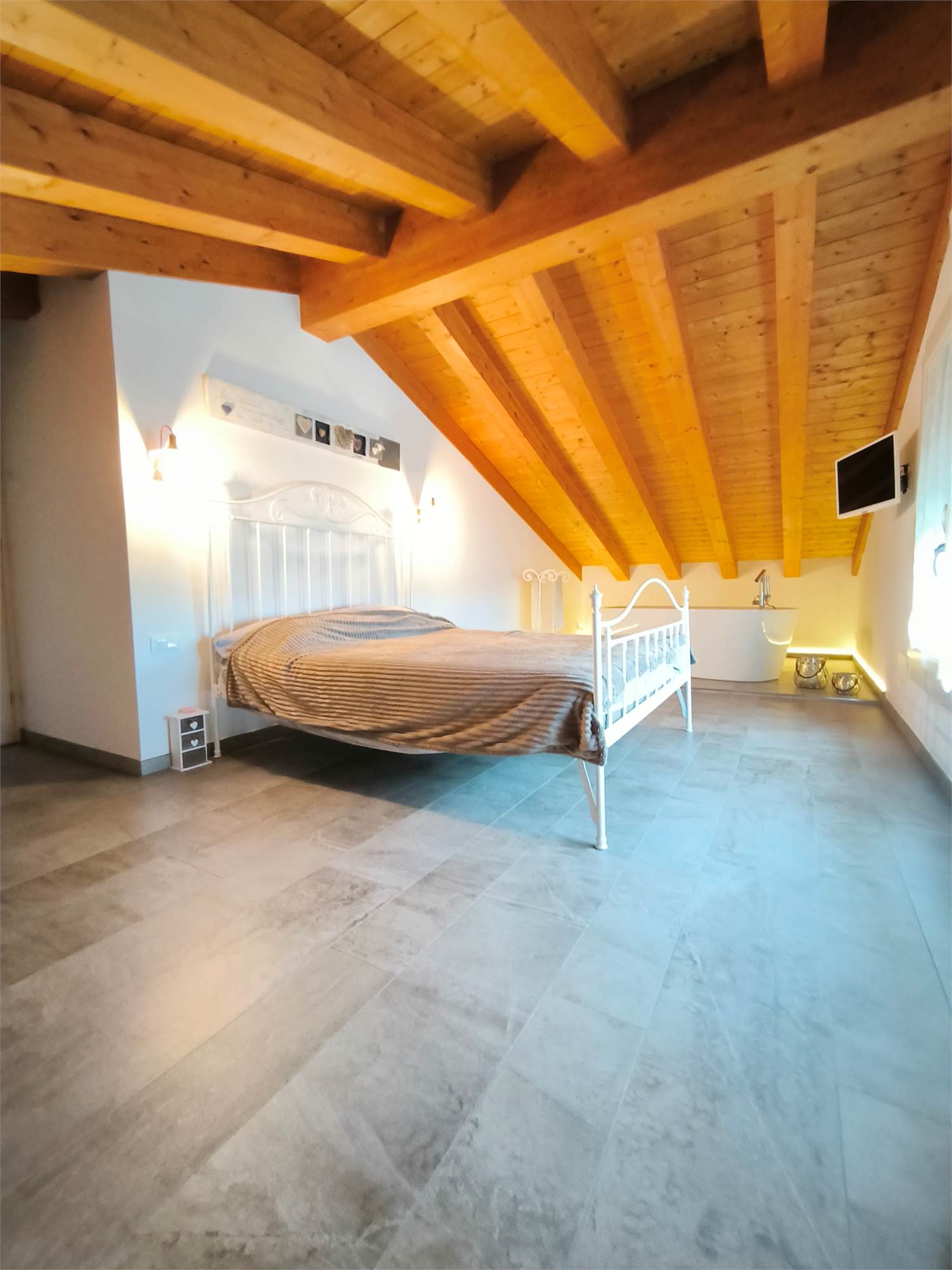 AL PRIMO PIANO SOTTOTETTO UNA GRANDE CAMERA PADRONALE CON VASCA FREESTANDING, UN'ALTRA CAMERA MATRIMONIALE, UNA CABINA ARMADIO ED UN BAGNO.AL PIANO SEMINTERRATO UNA ZONA TAVERNA/PALESTRA CON BAGNO ANNESSO E LAVANDERIA;