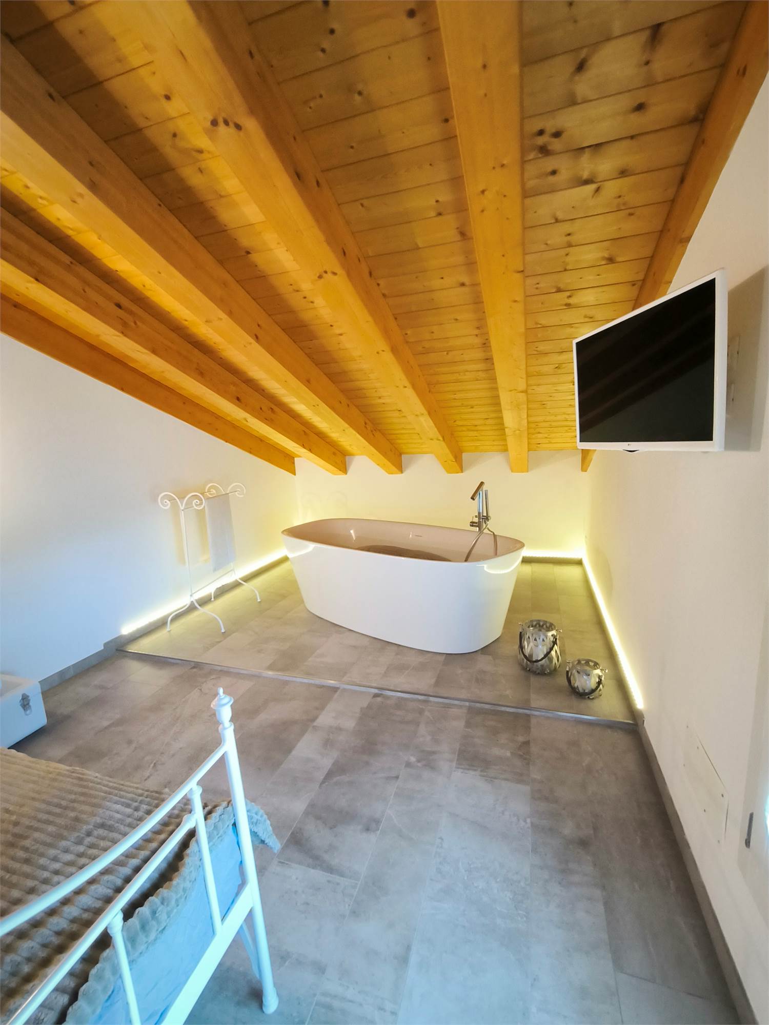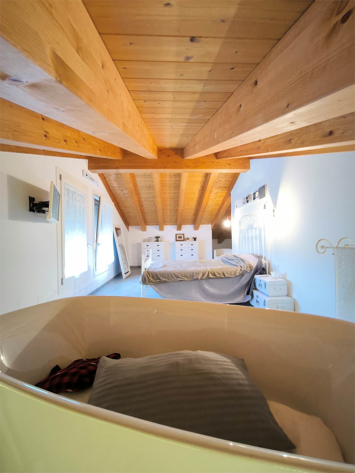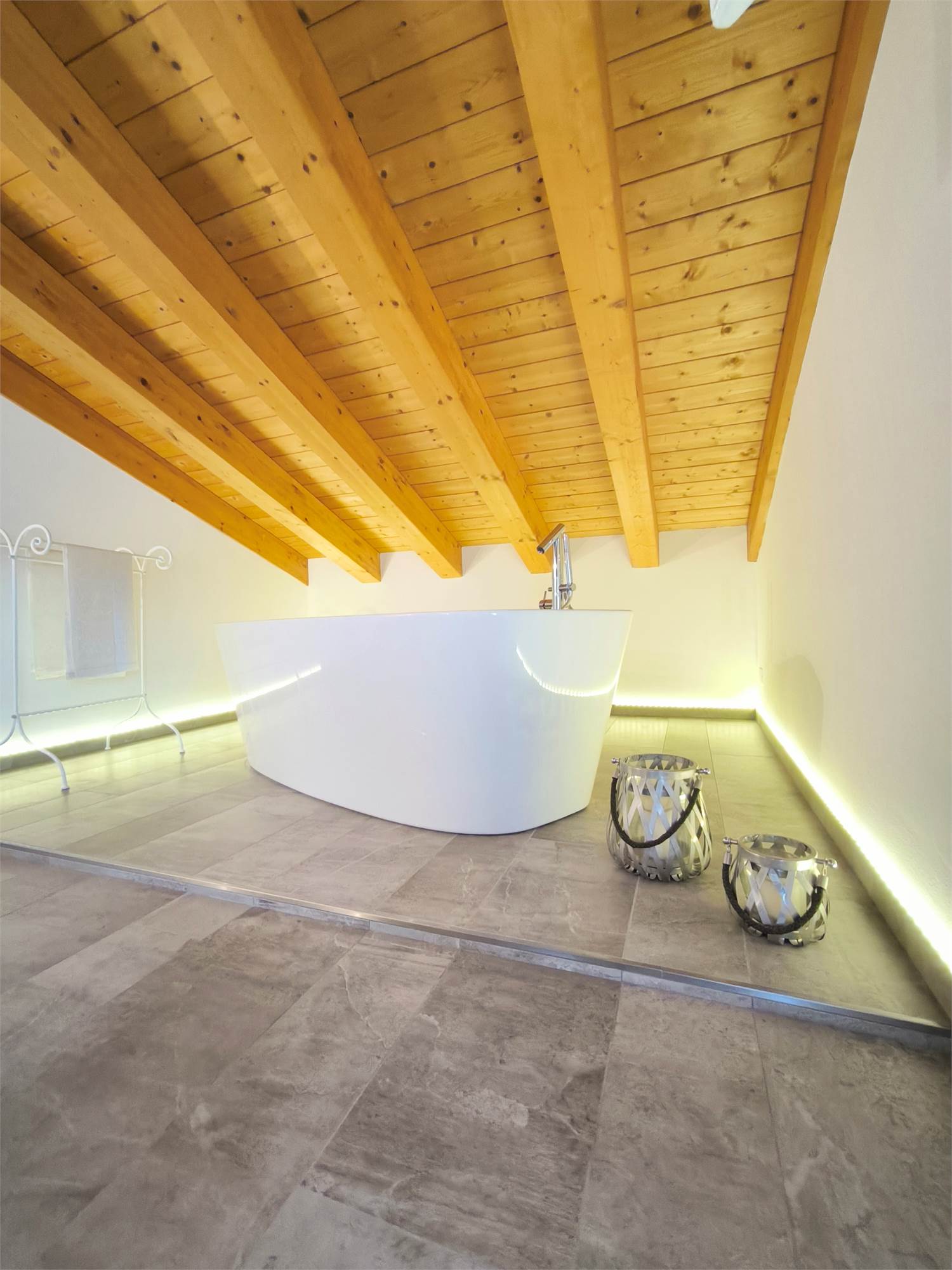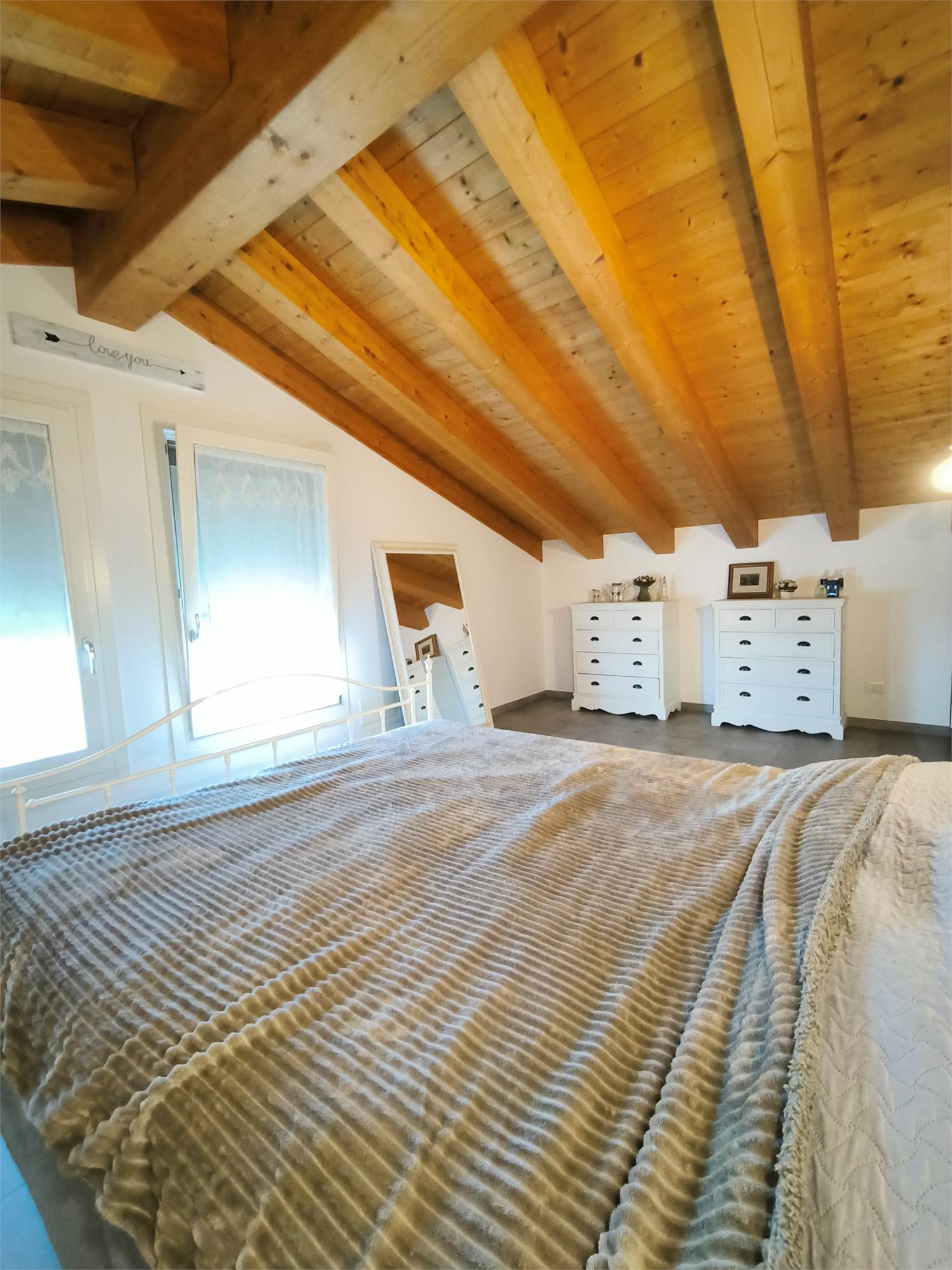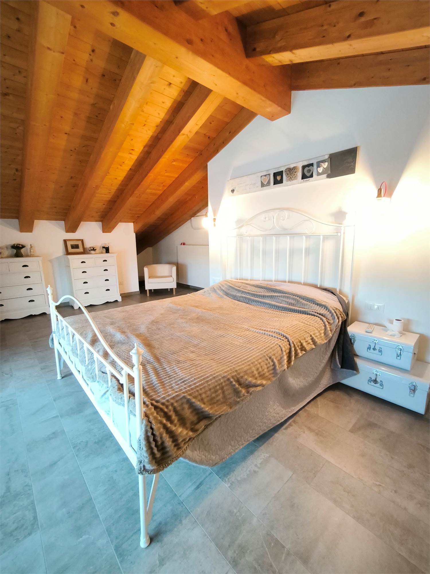 AL PRIMO PIANO SOTTOTETTO UNA GRANDE CAMERA PADRONALE CON VASCA FREESTANDING, UN'ALTRA CAMERA MATRIMONIALE, UNA CABINA ARMADIO ED UN BAGNO.AL PIANO SEMINTERRATO UNA ZONA TAVERNA/PALESTRA CON BAGNO ANNESSO E LAVANDERIA;