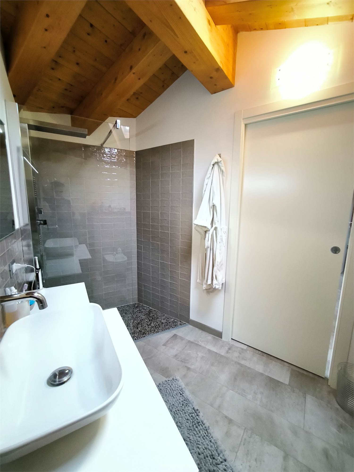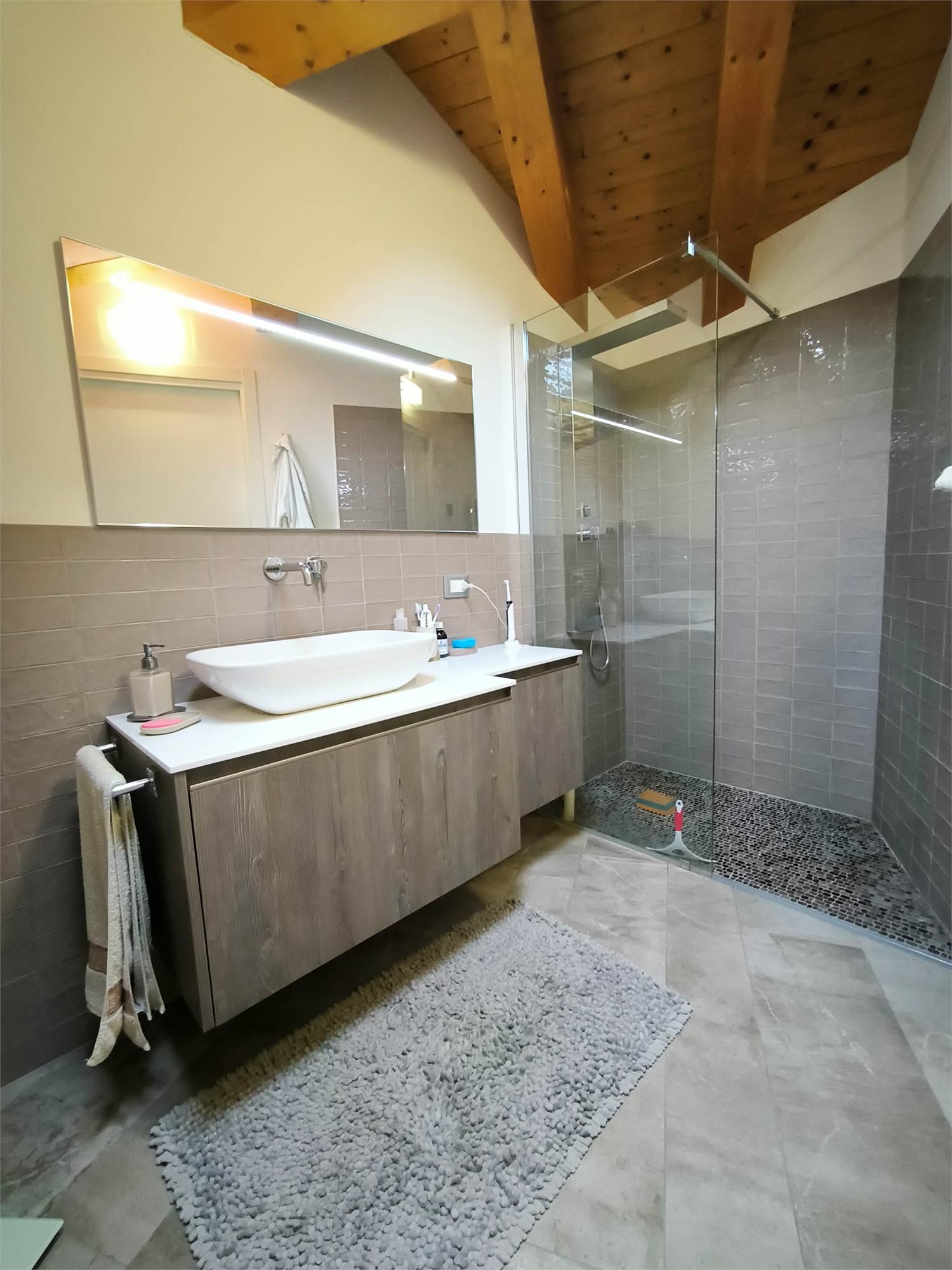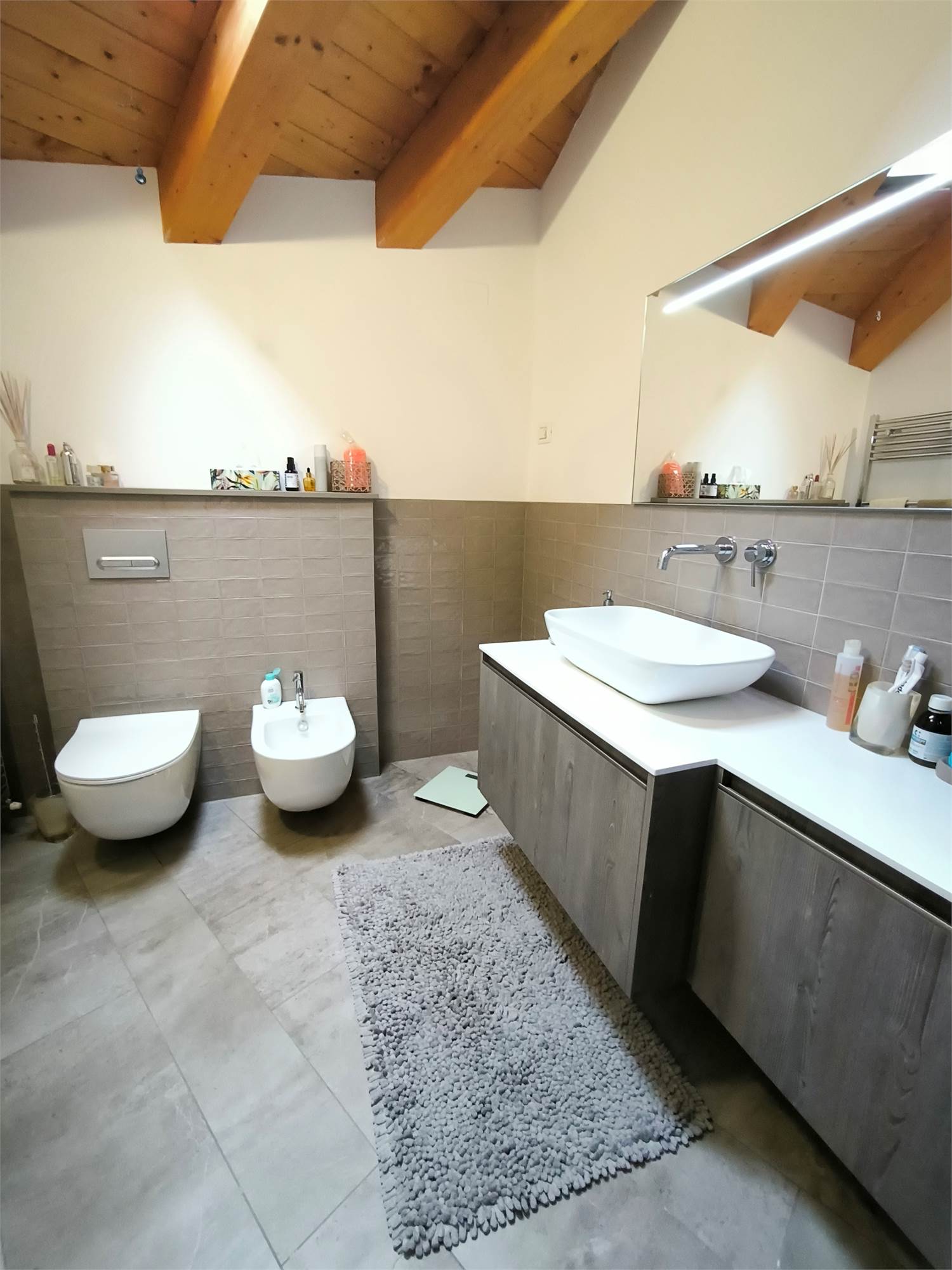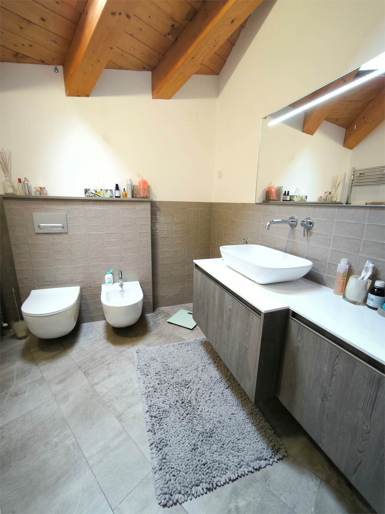 AL PRIMO PIANO SOTTOTETTO UNA GRANDE CAMERA PADRONALE CON VASCA FREESTANDING, UN'ALTRA CAMERA MATRIMONIALE, UNA CABINA ARMADIO ED UN BAGNO.AL PIANO SEMINTERRATO UNA ZONA TAVERNA/PALESTRA CON BAGNO ANNESSO E LAVANDERIA;